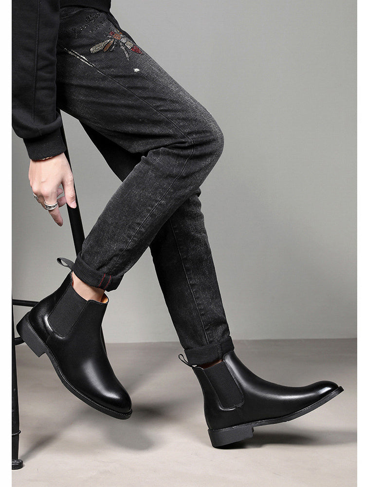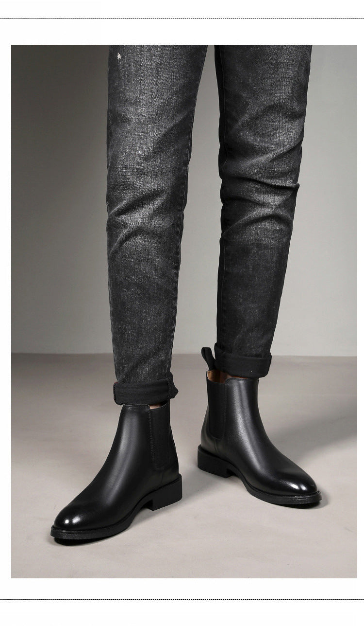 Yeknu Luxur Brand Genuine Leather Chelsea Boots Men Winter Shoes Fashion Elegant Male Business Dress High Top Shoes for Men Ankle Boot
