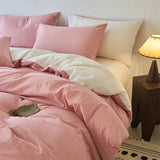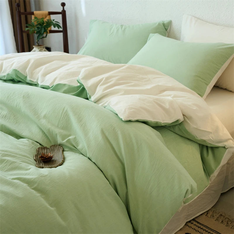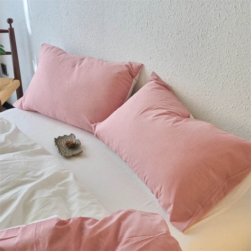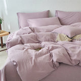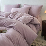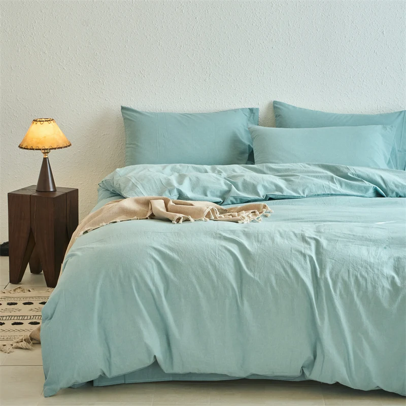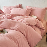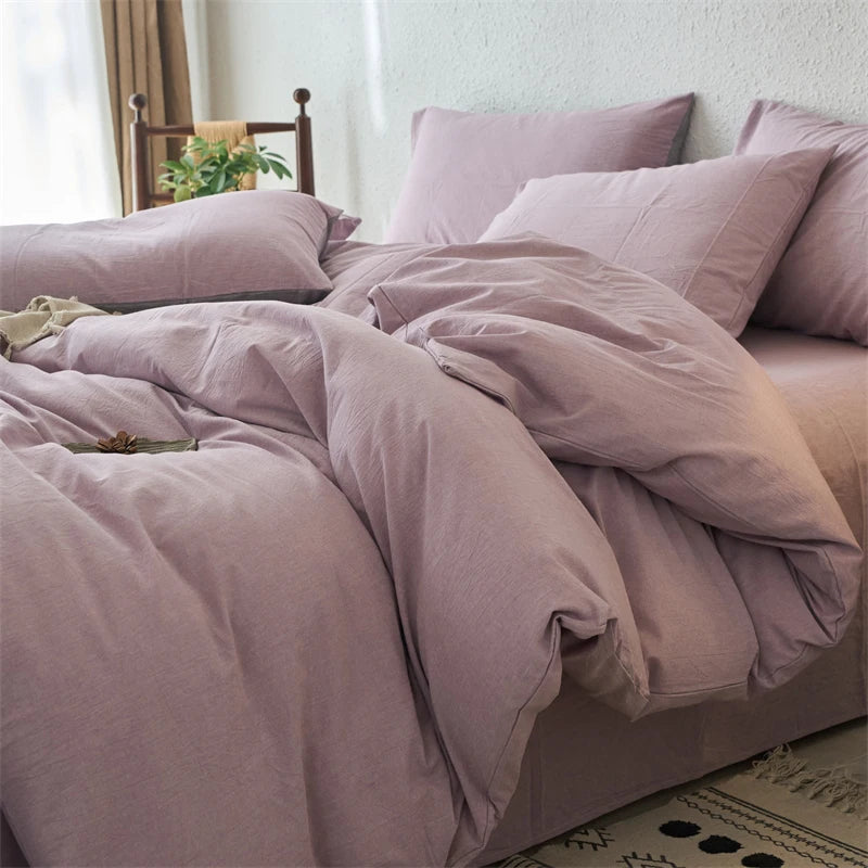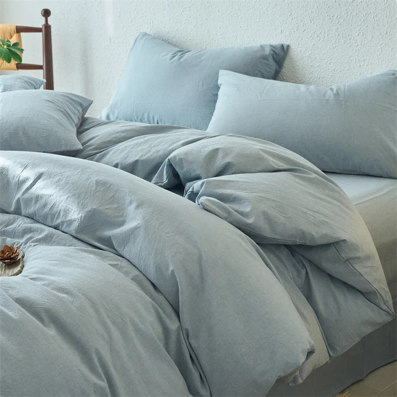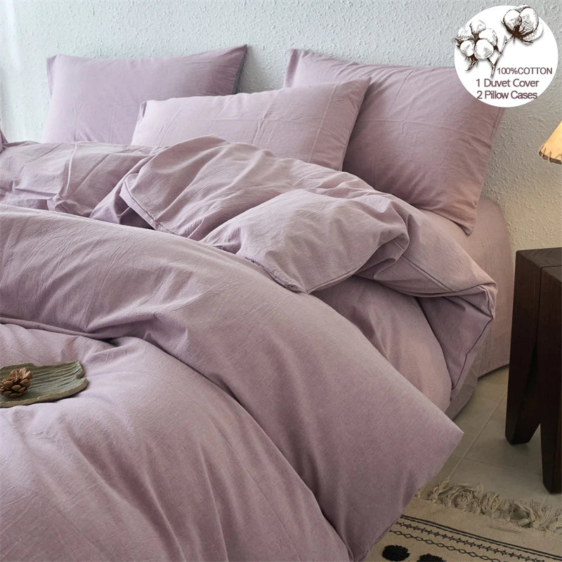 Yeknu Luxury 100% Washed Cotton Yarn-Dyed Solid Color 3-Piece Duvet Cover Set (1 Duvet Cover + 2 Pillowcases), Ultra-Soft Bedding Set