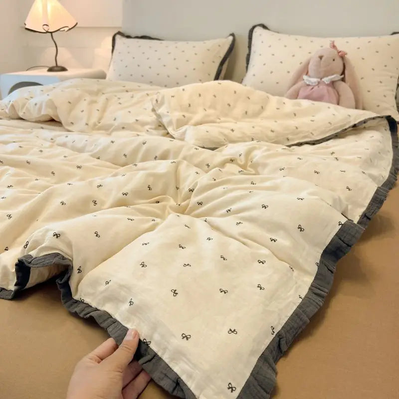 Yeknu Luxury Lace Bedding Set No Filler Black Dot Ins French Quilt Cover Bed Sheet Pillowcase 3 or 4 pcs Girls Home Decor Quilt Cover
