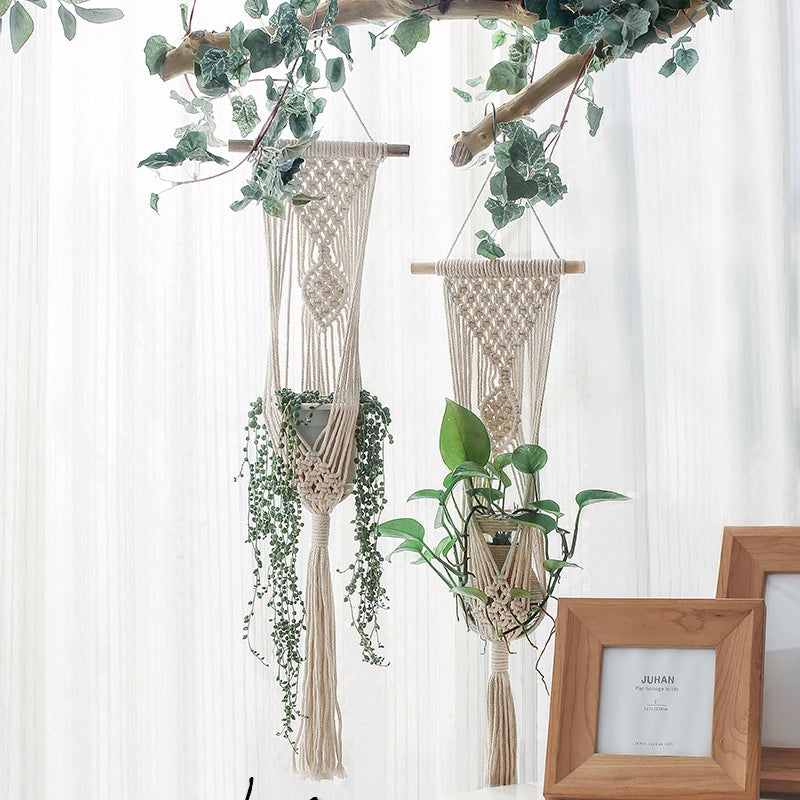 Macrame Wall Hanging Plant Hanger Woven Bohemia Macrame Air Plant Hanger Holder Hanging Planter Basket Wall Hanging Home Balcony Decoration