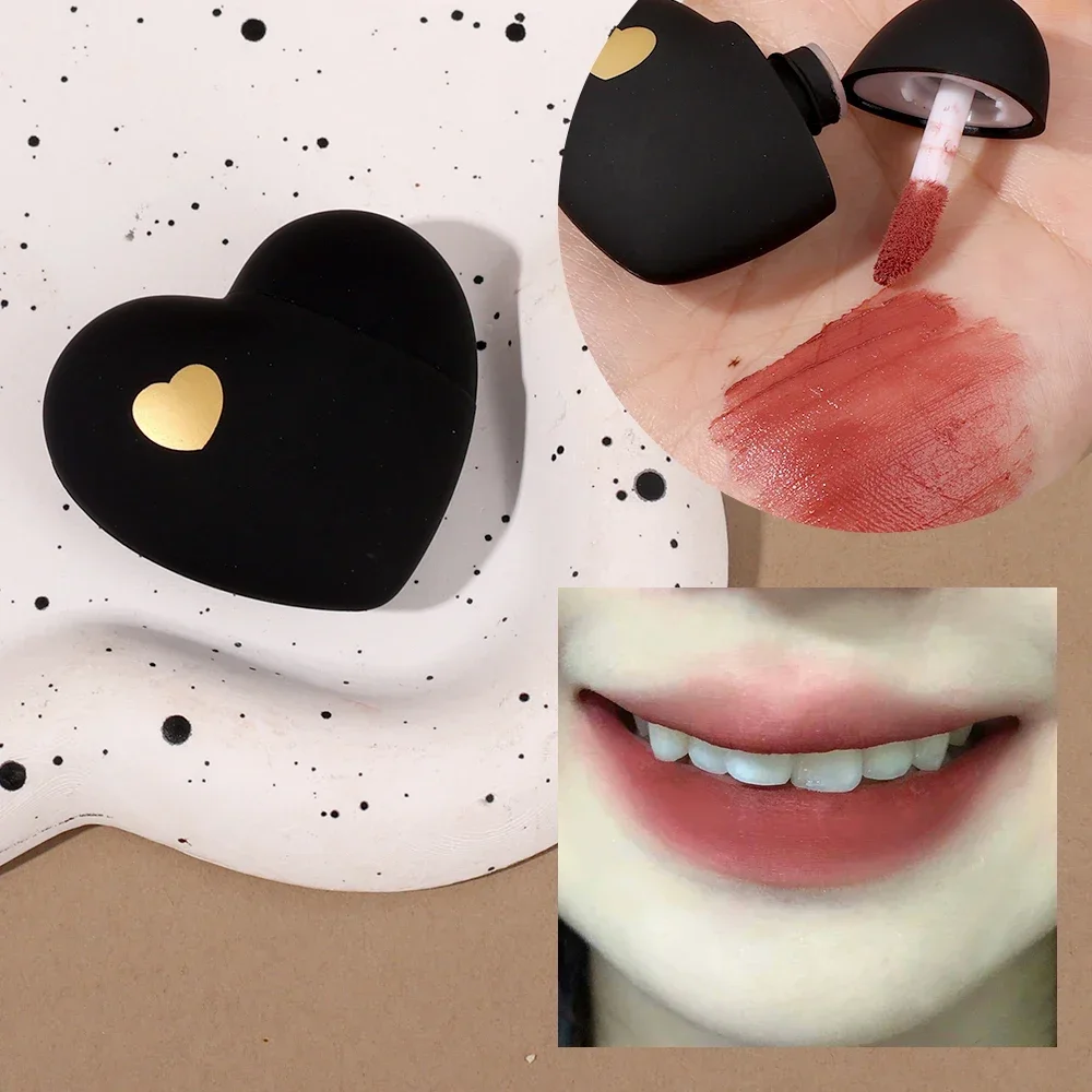 Yeknu Matte Red Brown Lip Gloss Waterproof Long-lasting Easy To Wear Nude Velvet Love Heart Lip Mud Korean Makeup Lip Tint Cosmetics