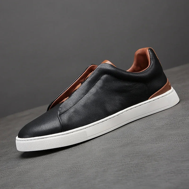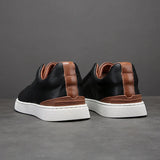 Yeknu Men Casual Shoes genuine leather Handmade Lace-up Flat Shoes Men Black office Work Shoe Business Casual Sneakers Men Shoes