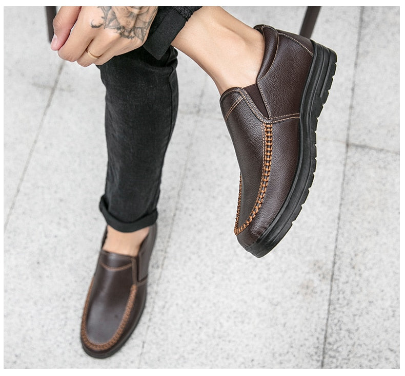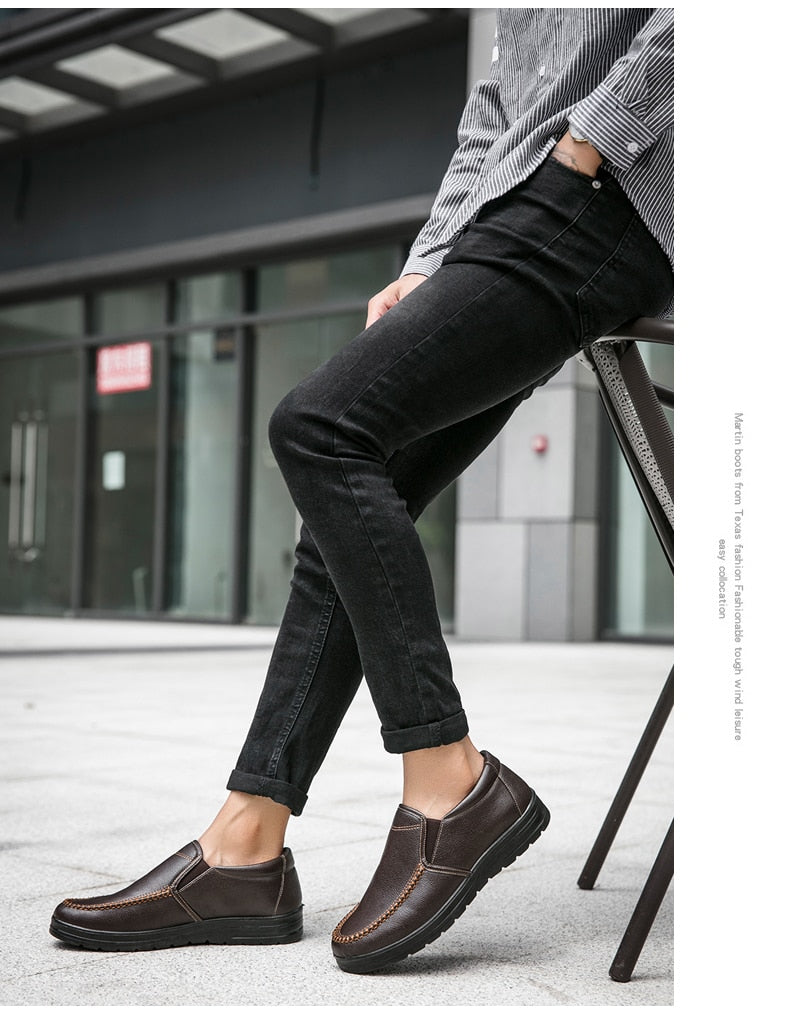 Yeknu Men Loafers Light Leather Casual Shoes Autumn Male Outdoor Walking Shoes Comfortable Mens Sneakers Soft Loafers Men's Shoes