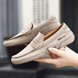 Yeknu Men Moccasin Loafers slip on Casual Genuine Leather Driving Shoes outdoor Boat Shoes cow suede leather Moccasins For Man