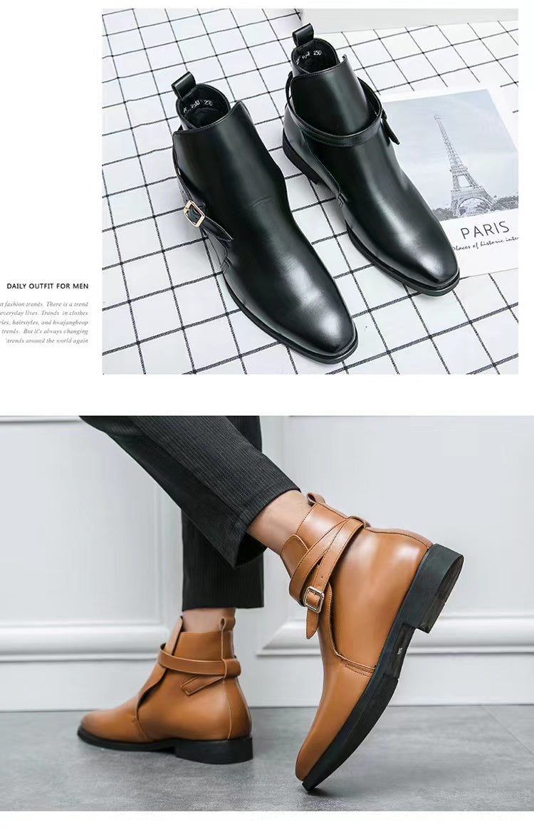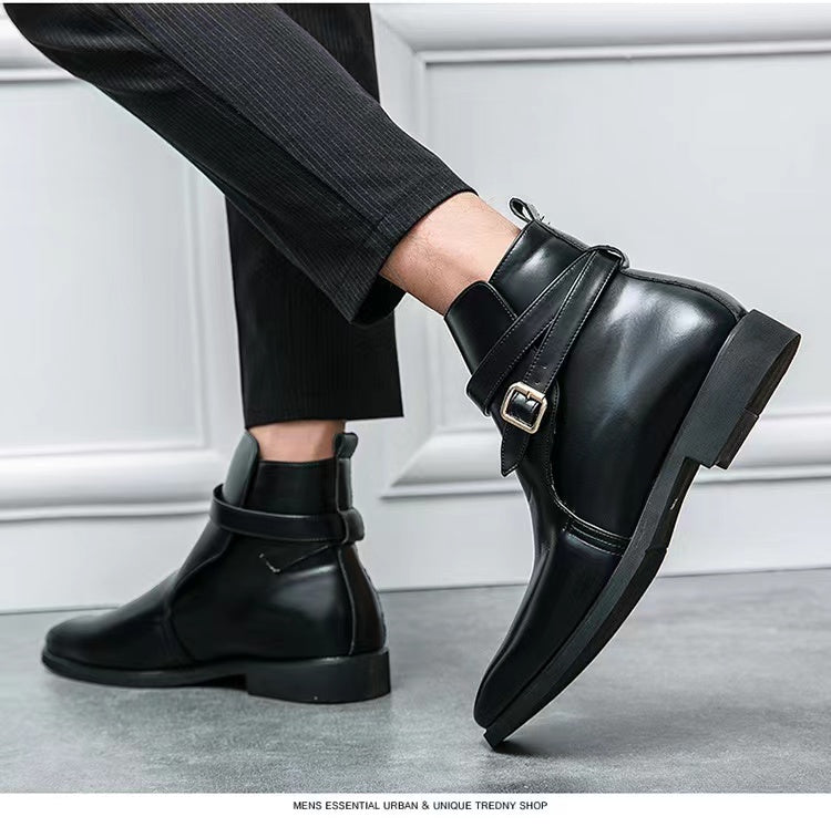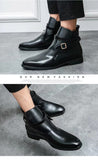 Yeknu Men's Handmade PU Black Buckle Short Boots Trendy Fashion High Quality Everyday All-match Business Casual Chelsea Boots 1KB020