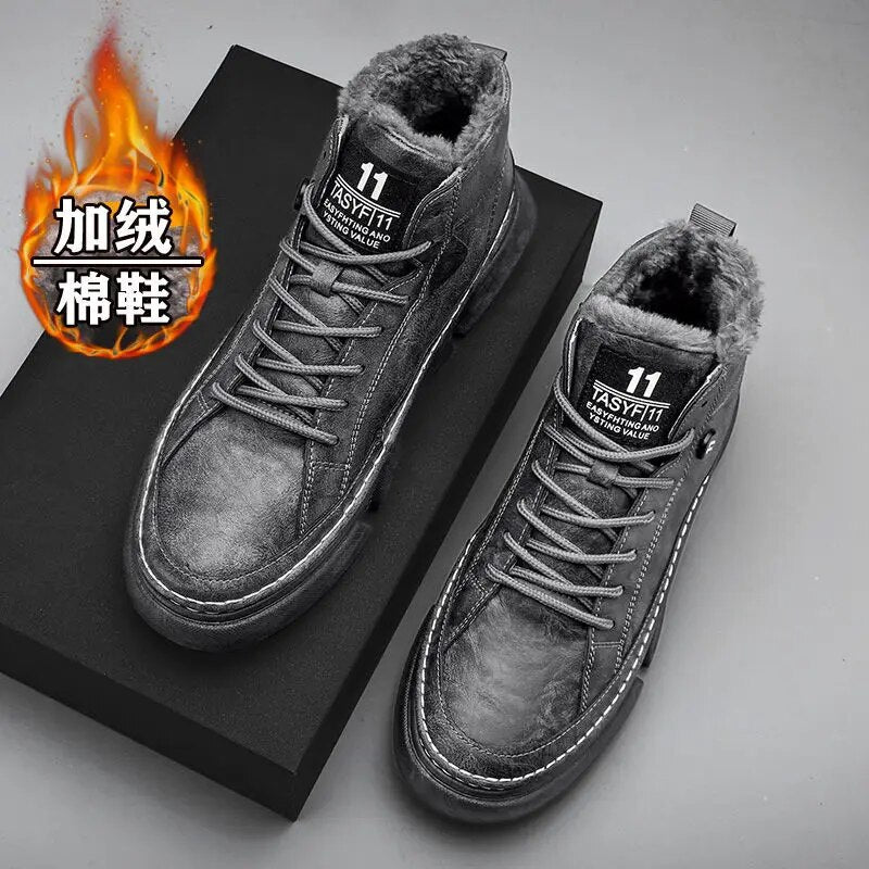 Yeknu - Men's Snow Boots Winter Men's Leather Boots Fur Warm Men's Snow Boots Outdoor Comfortable Mens Designer Sneakers Botas Hombre