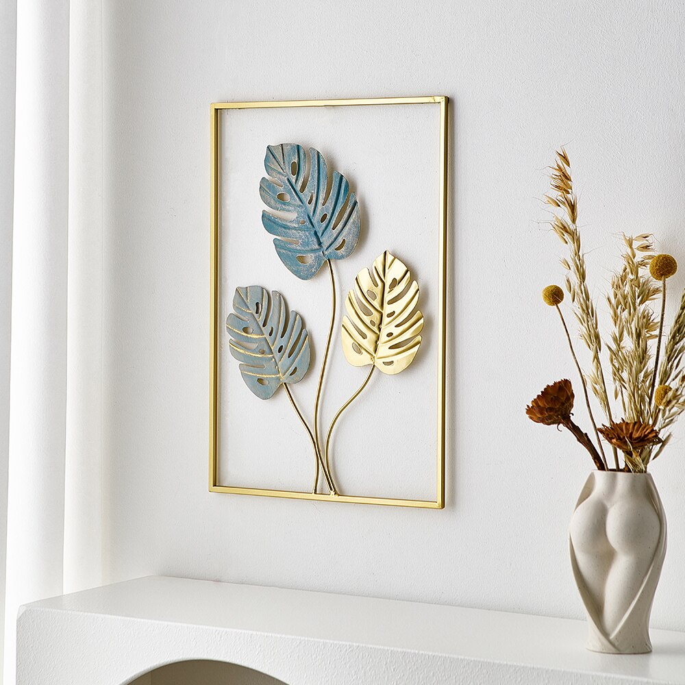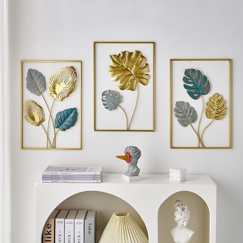 Yeknu Metal Art Wall Hanging Nordic Wall Decor Living Room Decoration Plant Leaves Wall Sticker Bedroom Home Decoration Accessories