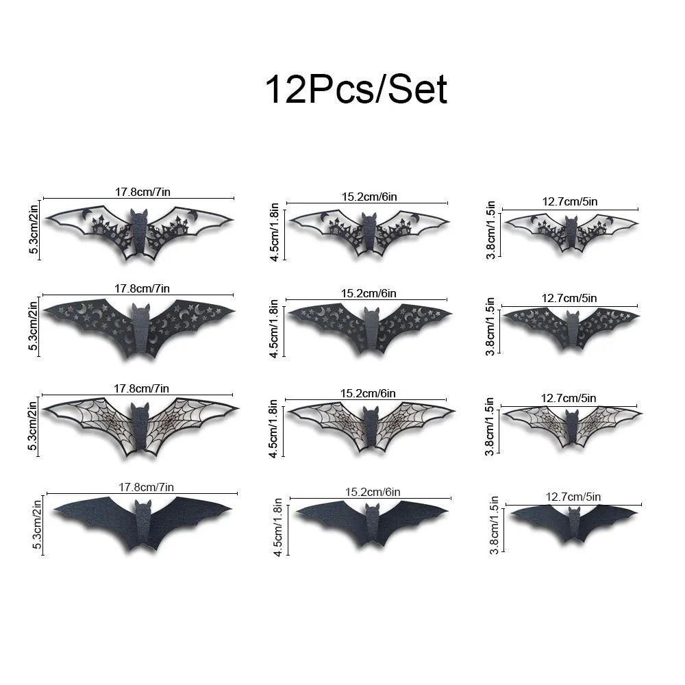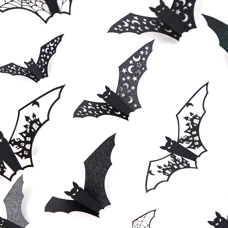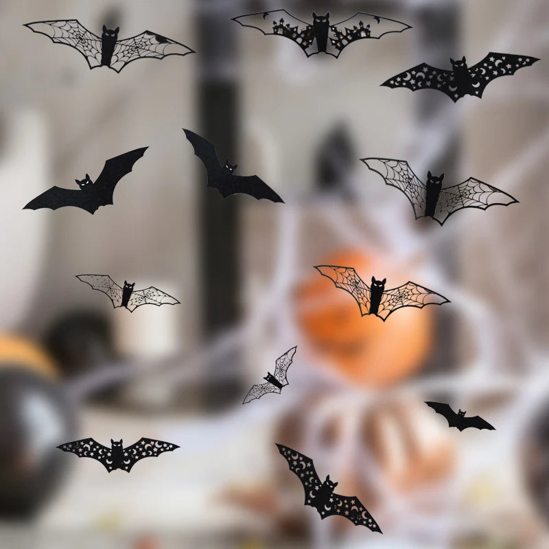 Yeknu Mini Halloween 3D Hollow Bat Wall Stickers Black Bat Sticker Room Decor Party DIY Decals Halloween Horror Bats Removable