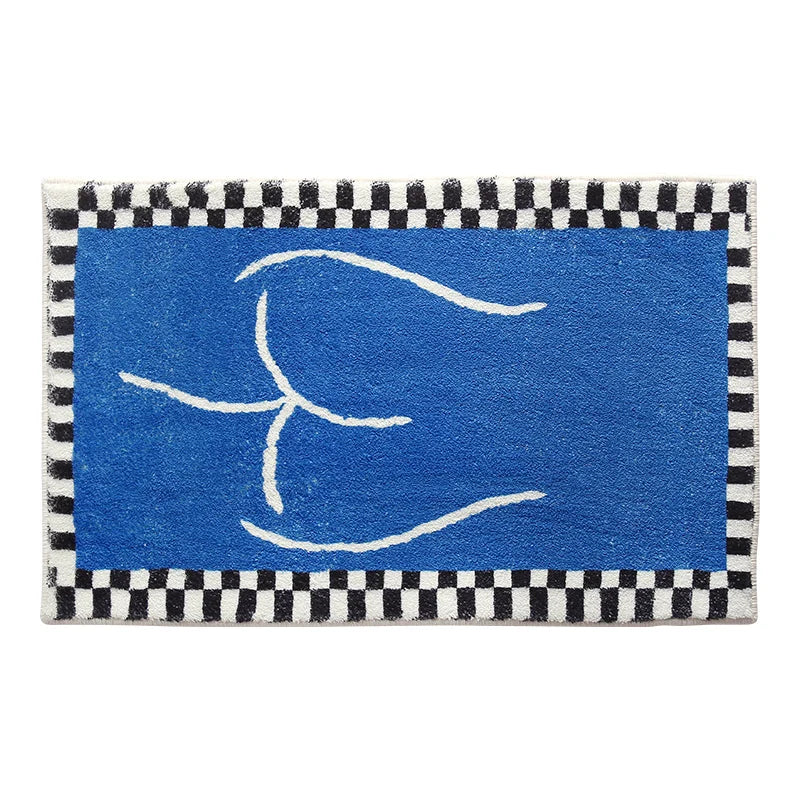 Yeknu Minimalist Abstract Plaid Blue Rugs Comfortable Soft Bedroom Decoration Rug Bathroom Non-slip Door Mat Super Absorbent Cushions