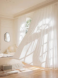 Yeknu Minimalist Luxury Pure White Gauze Curtain Sun Protection Living Room Translucent Curtains Wheat Grain Texture Bedroom Curtains