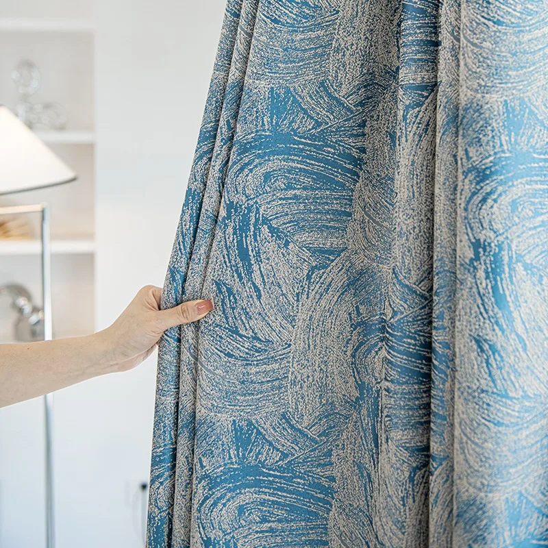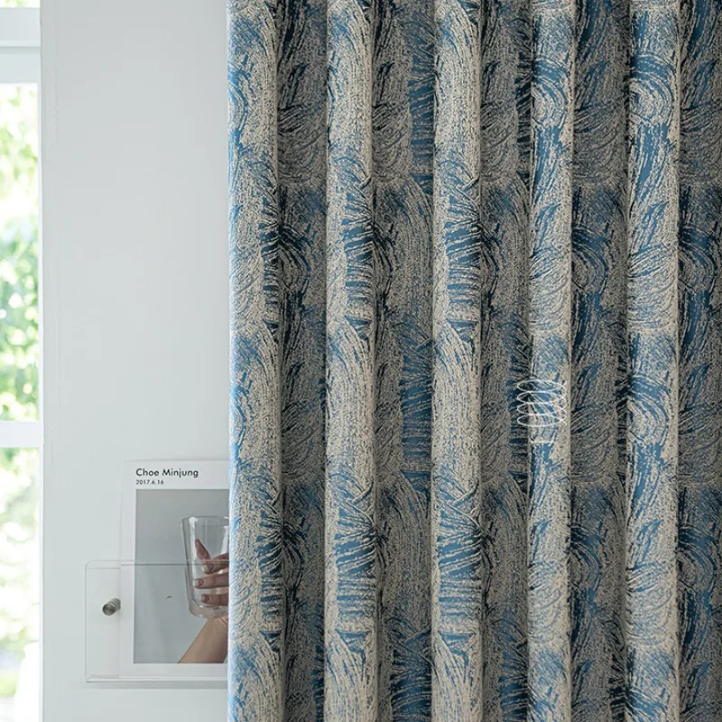 Yeknu Modern Creative Art Living Room Curtains Abstract Texture Bedroom Blackout Curtains Blue Luxury Study Room Decorative Curtain IG