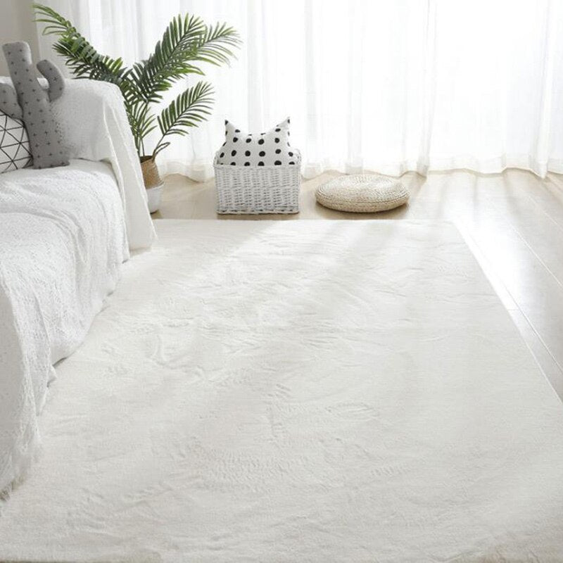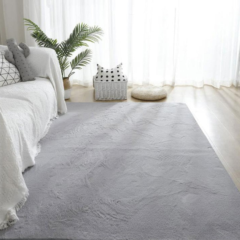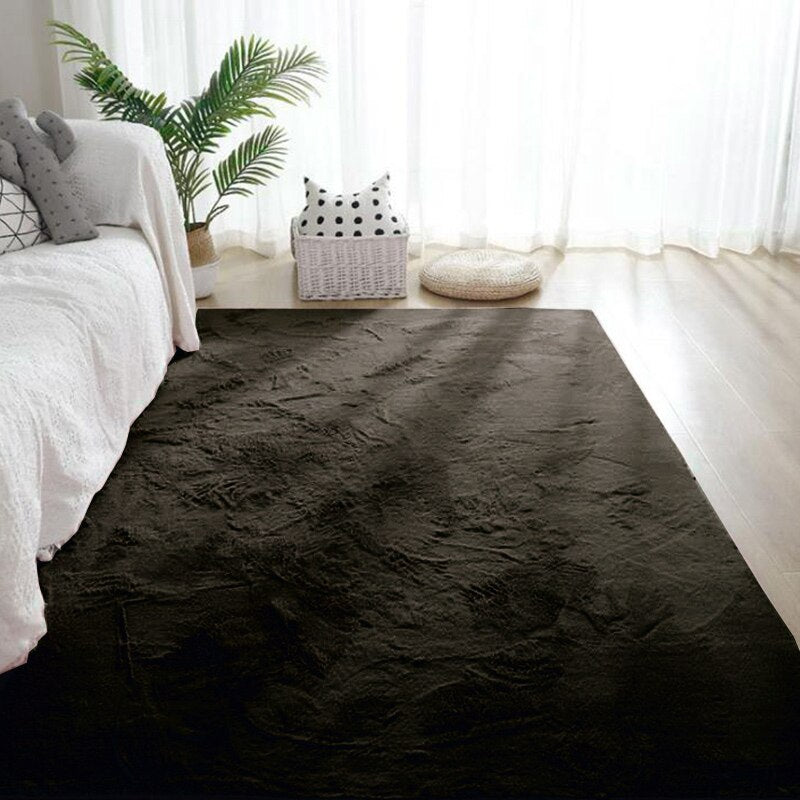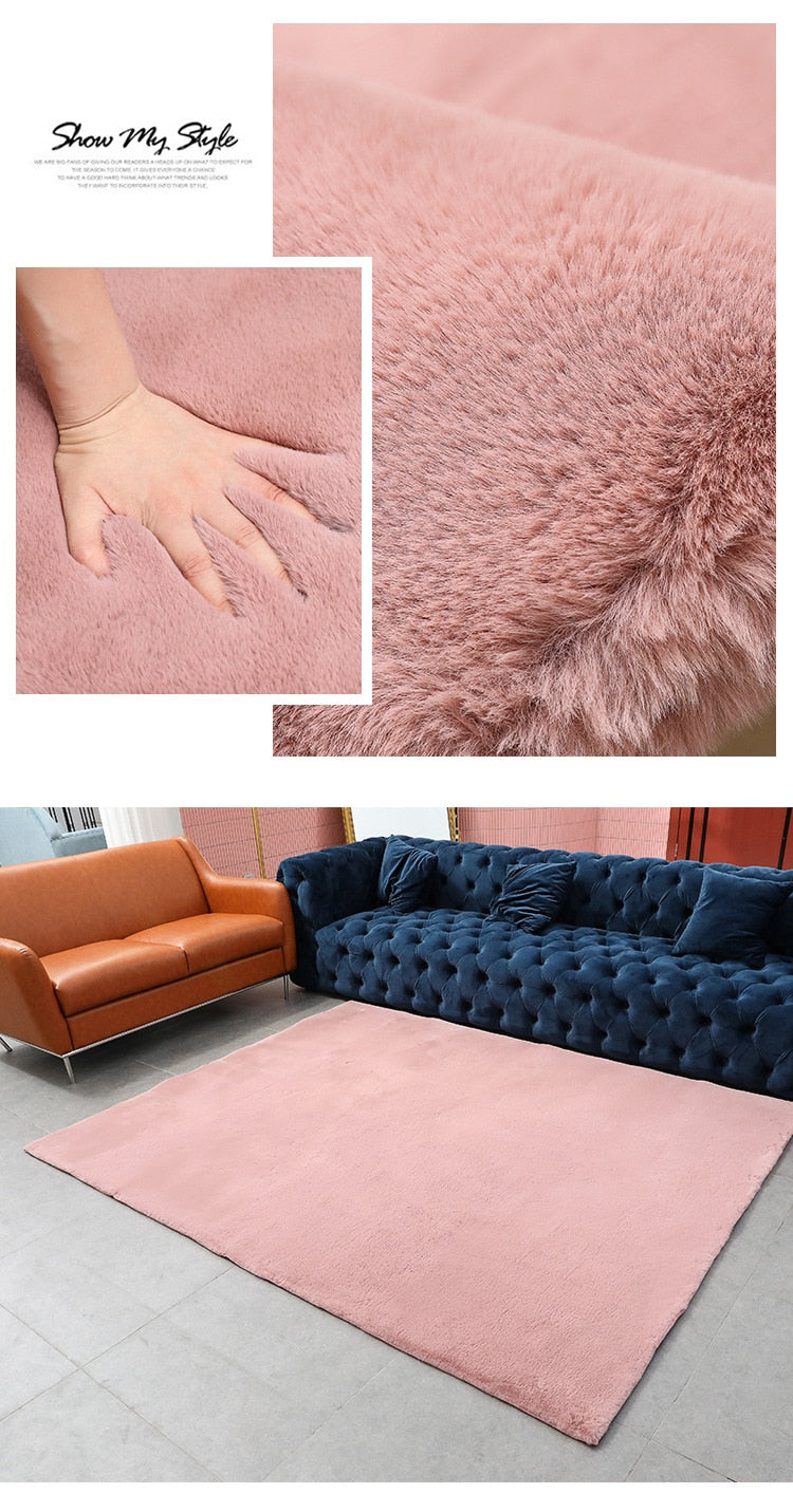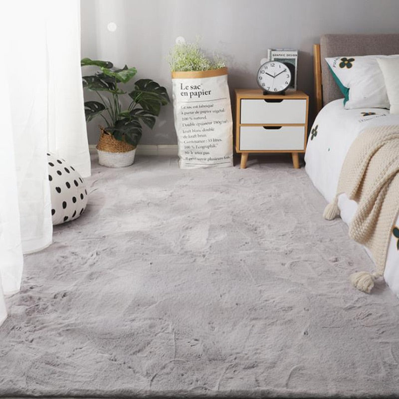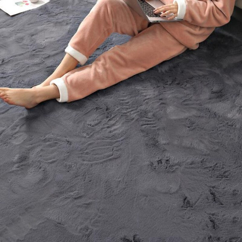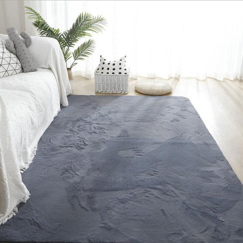 Yeknu Modern Home Decor Artificial Rabbit Carpet Living Room Soft Fluffy Plush Rugs Children Bedroom Mat Non-slip Faux Fur Carpet Gray