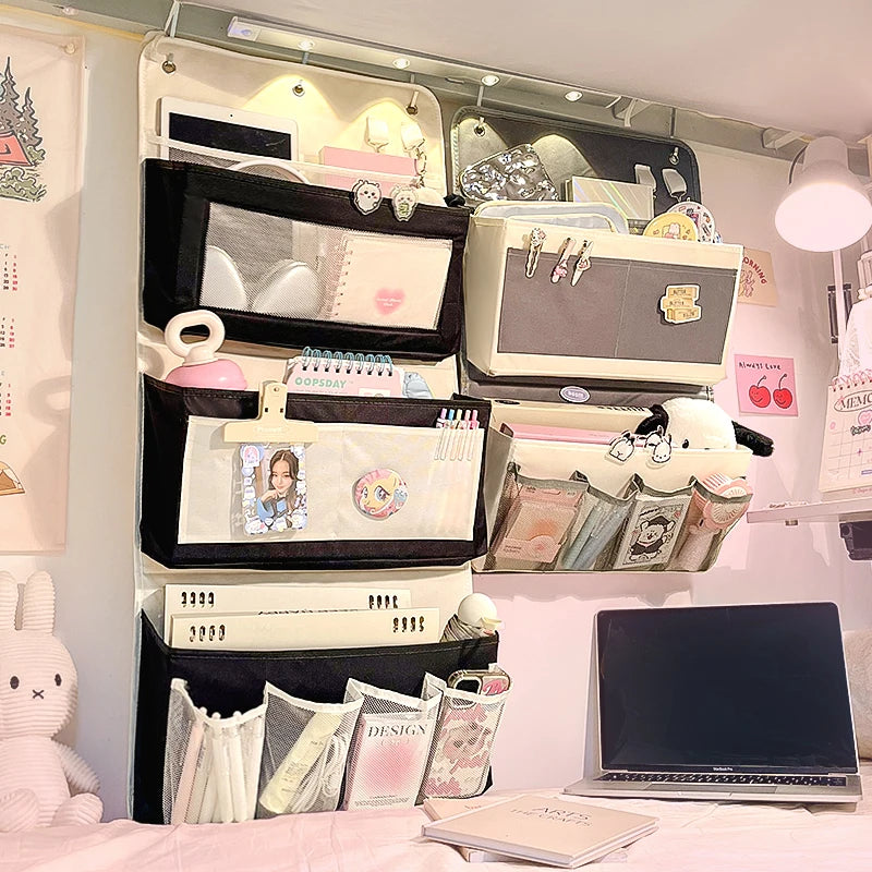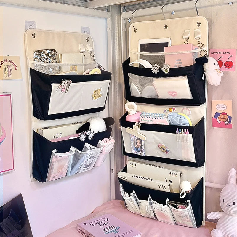 Yeknu Multi-layer Fabric Storage Hanging Bag Organizer Large Capacity Pockets Foldable Sundries Stationery Jewelry Hanging Holder