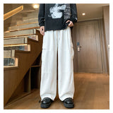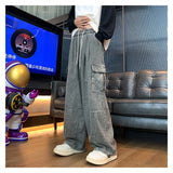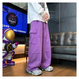 Yeknu Multi-Pocket Washed Cargo Pants Men Women Y2K Vintage Streetwear Loose Oversized Straight Wide-Leg Jeans Dark Green/Purple