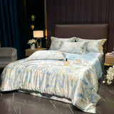 Yeknu Natural Silk Bedding Set High-End Luxury Soft Silky Quilt Cover Set Single Double King Size Printing Duvet Cover Set