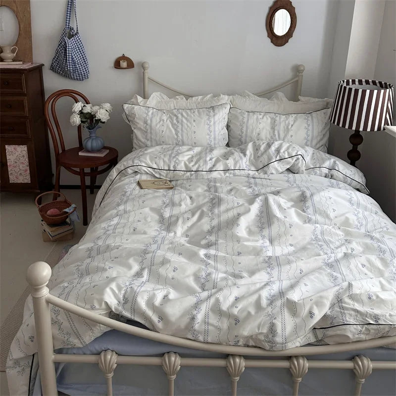 Yeknu new inlaid rope spring and summer pastoral blue jasmine series four-piece set of sheets skin-friendly and breathable