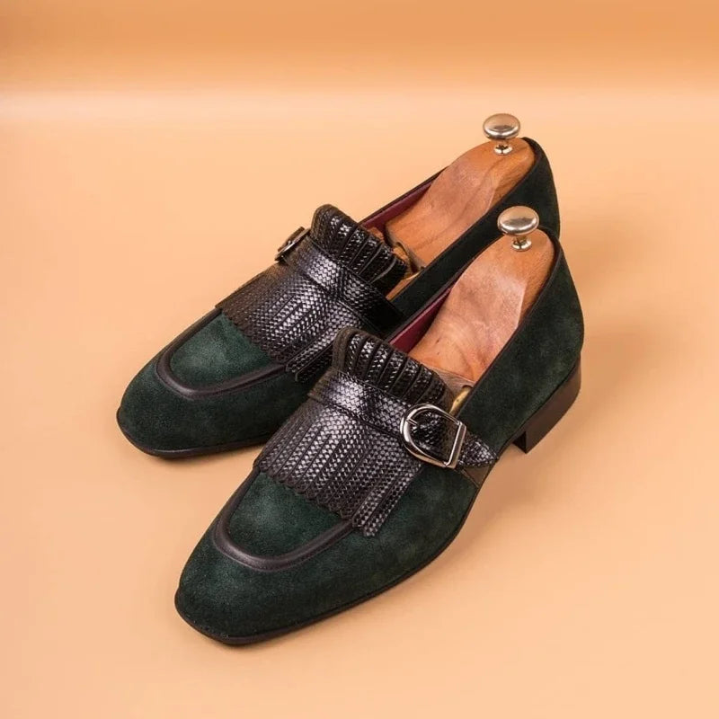 Yeknu New Men Dress Shoes Loafers Flock Tassels Green Slip-On Round Toe Party Wedding Shoes for Men