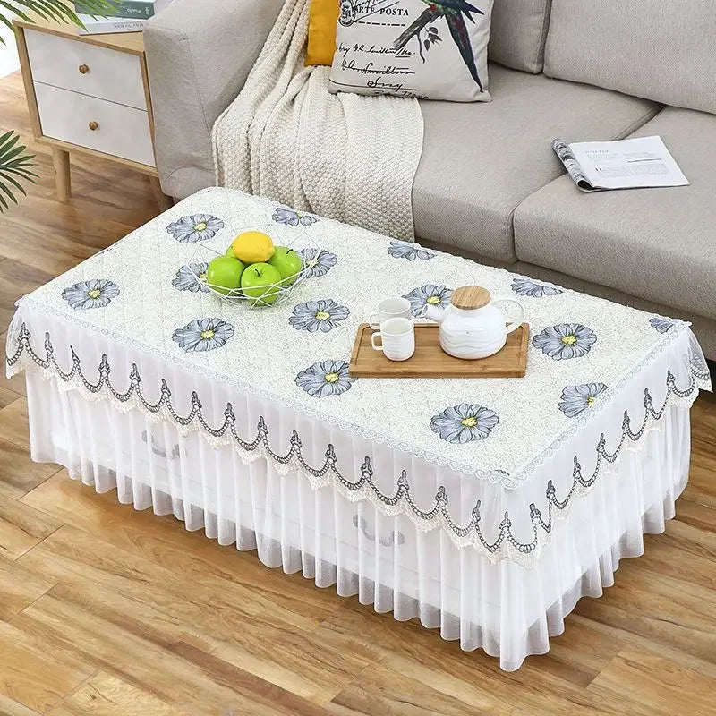 Yeknu New Pastoral Lace edge Rectangular Coffee Table Cover Dustproof Antiskid Tablecloth Home Wedding Decoration dinning Table cloth