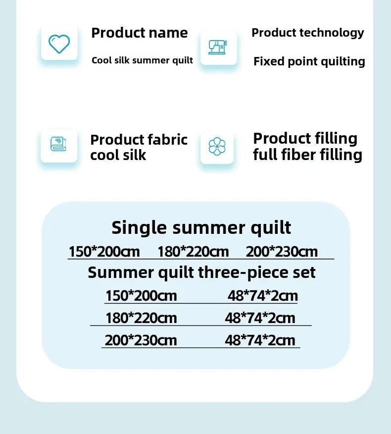 Yeknu new printed cool silk summer quilt three-piece summer cool quilt air conditioner quilt cool sleep experience washable