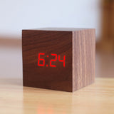 Yeknu New Qualified Digital Wooden LED Alarm Clock Wood Retro Glow Clock Desktop Table Decor Voice Control Snooze Function Desk Tools