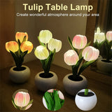 Yeknu New Tulip Table Lamp LED Bedside Lamp Simulation Flower Bouquet Bedroom Bedside Romantic Atmosphere Birthday Gift Home Decor