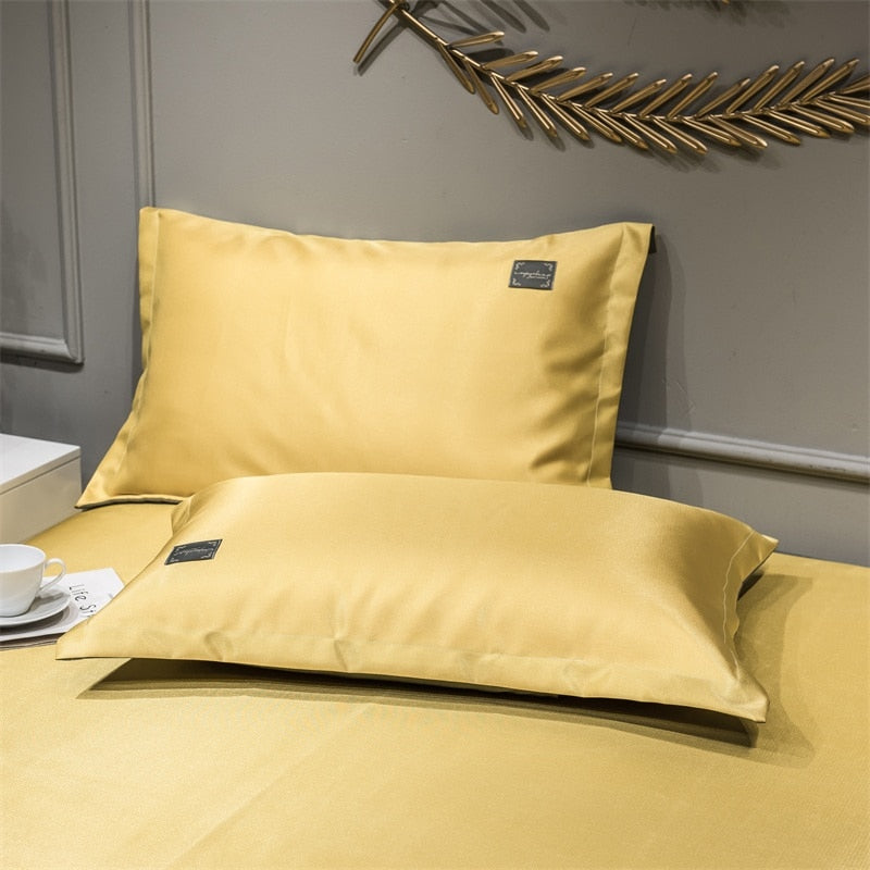 Yeknu Newest Products Pure Color Embroidered ice Silk Mat Bed Cover fitted sheet Pillowcases 3 pcs Luxury Bedding Yellow Color