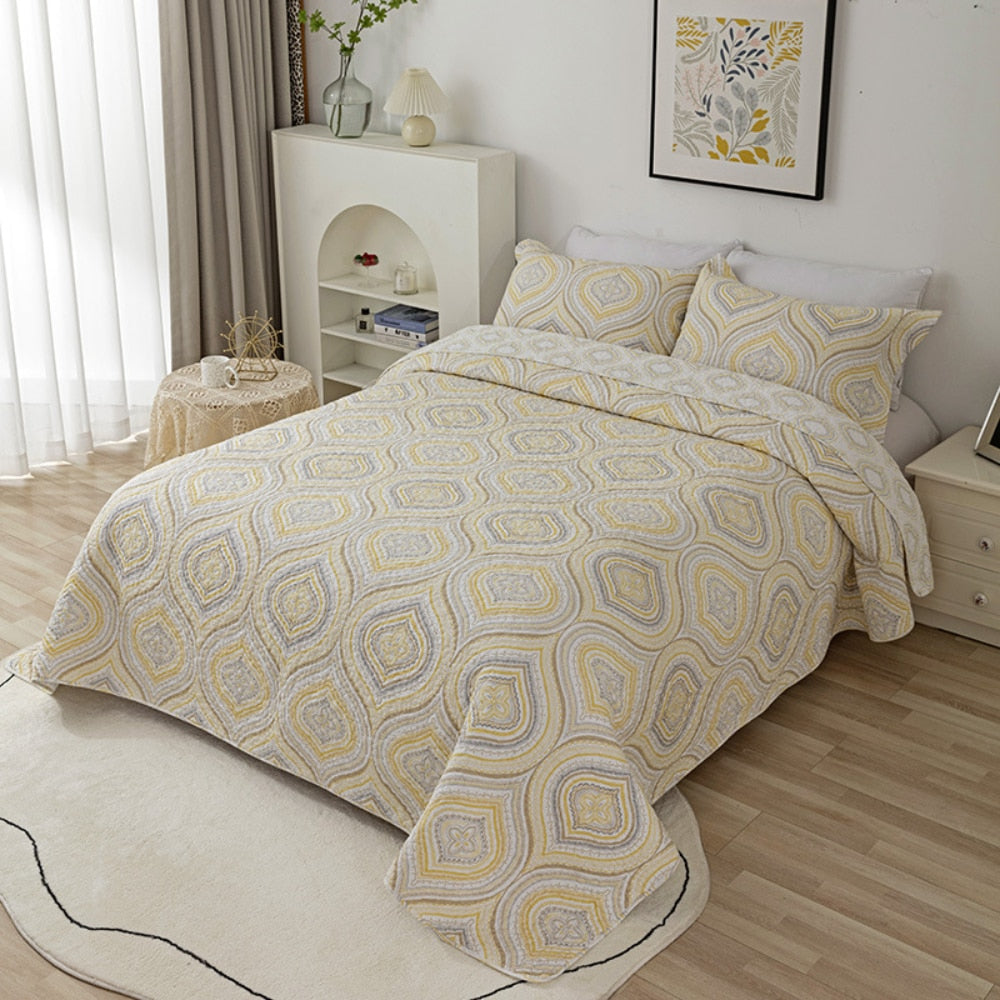 Yeknu Nordic Cotton Romantic Print Bedspread Pillowcase Quilted Bed Cover Sofa Blanket Four Seasons Coverlet Bedding 3PCS