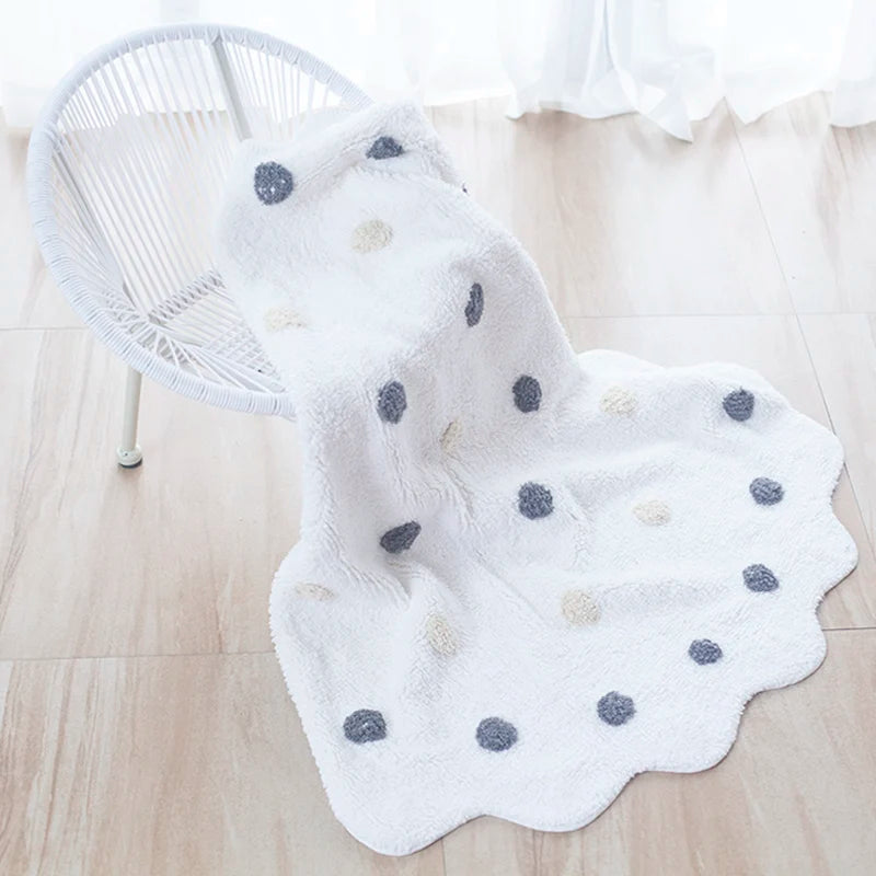 Nordic Round Rug Cotton Dots Floor Mat Soft Pink White Carpet Baby Play Area Children Bedroom Pad Kawaii Home Living Room Decor