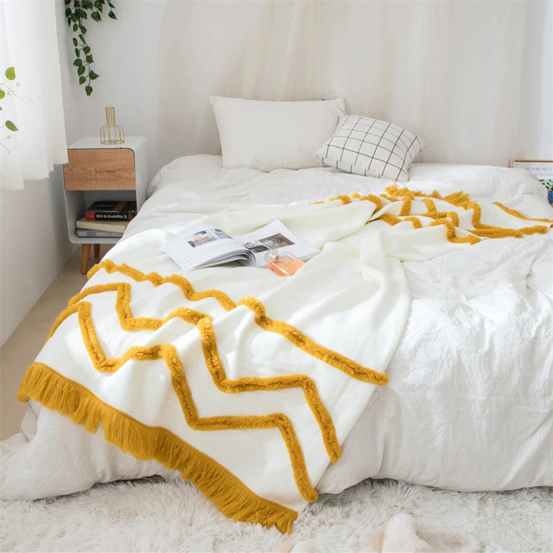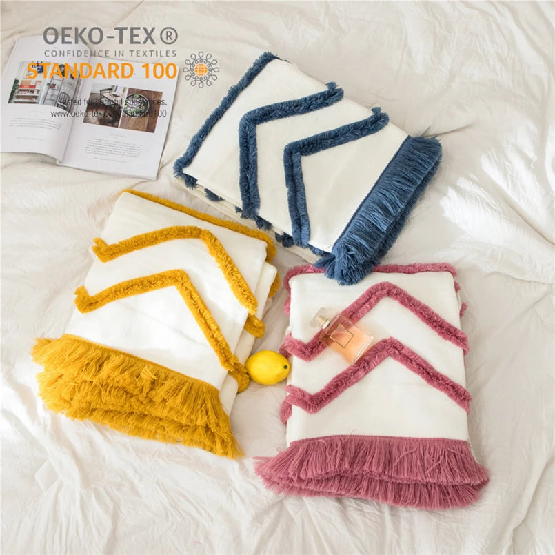 Yeknu Nordic-style Tufted Tassel Knitted Blanket Office Nap Casual Shawl Blanket Homestay Sofa Bed Tail Multifunctional Blanket