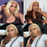 Yeknu Ombre Blonde Synthetic Hair Wig with Dark Brown Body Wave Long Wavy Lace Front Wig 13X4 Frontal Colored Wigs for Women Party