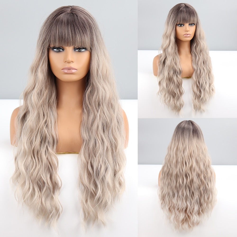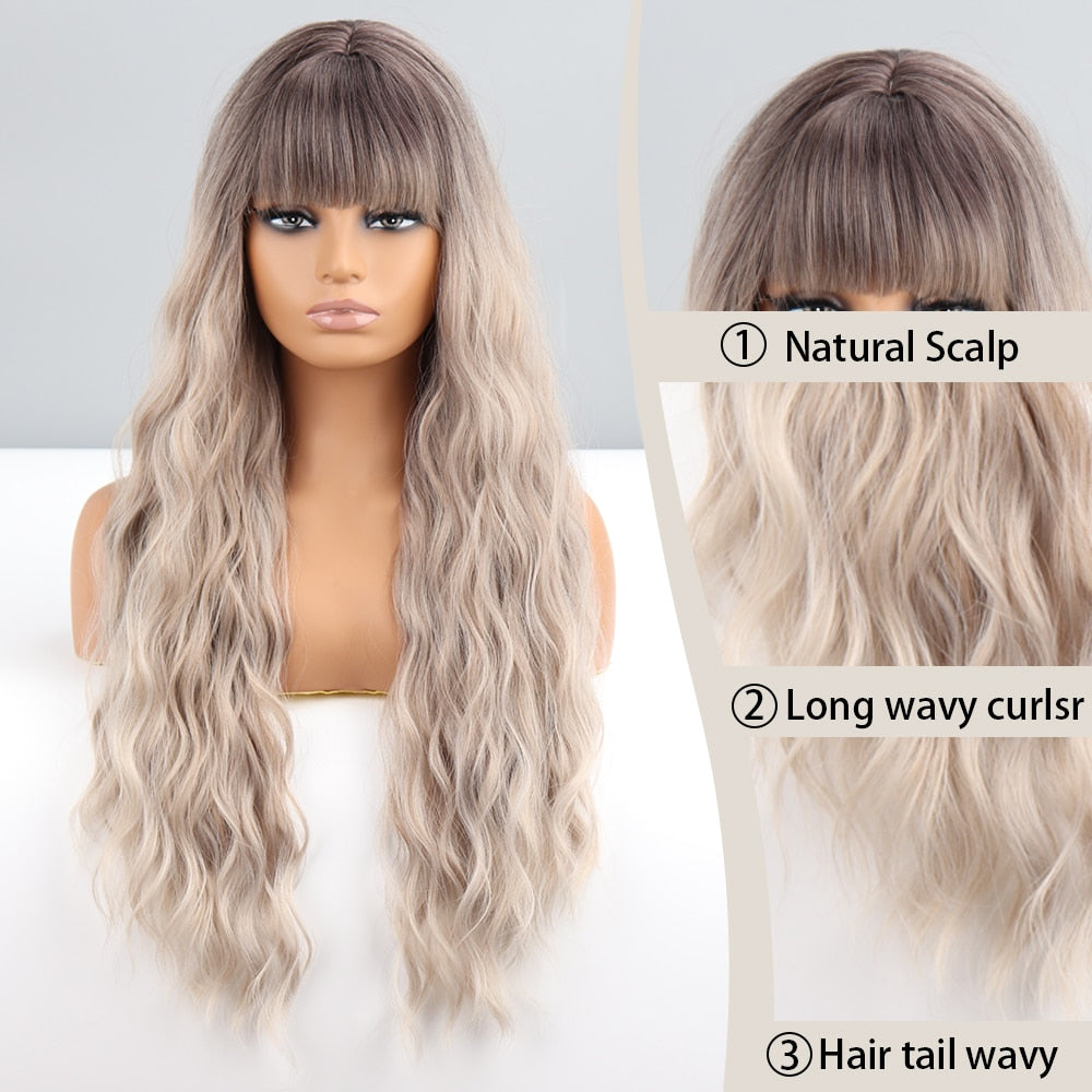 Yeknu Ombre Brown Light Blonde Platinum Long Wavy for Women Middle Part Hair Wig Cosplay Natural Heat Resistant Synthetic Wig