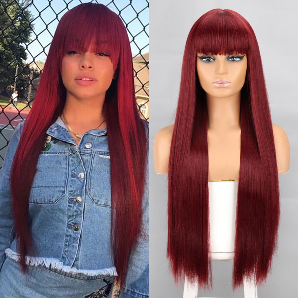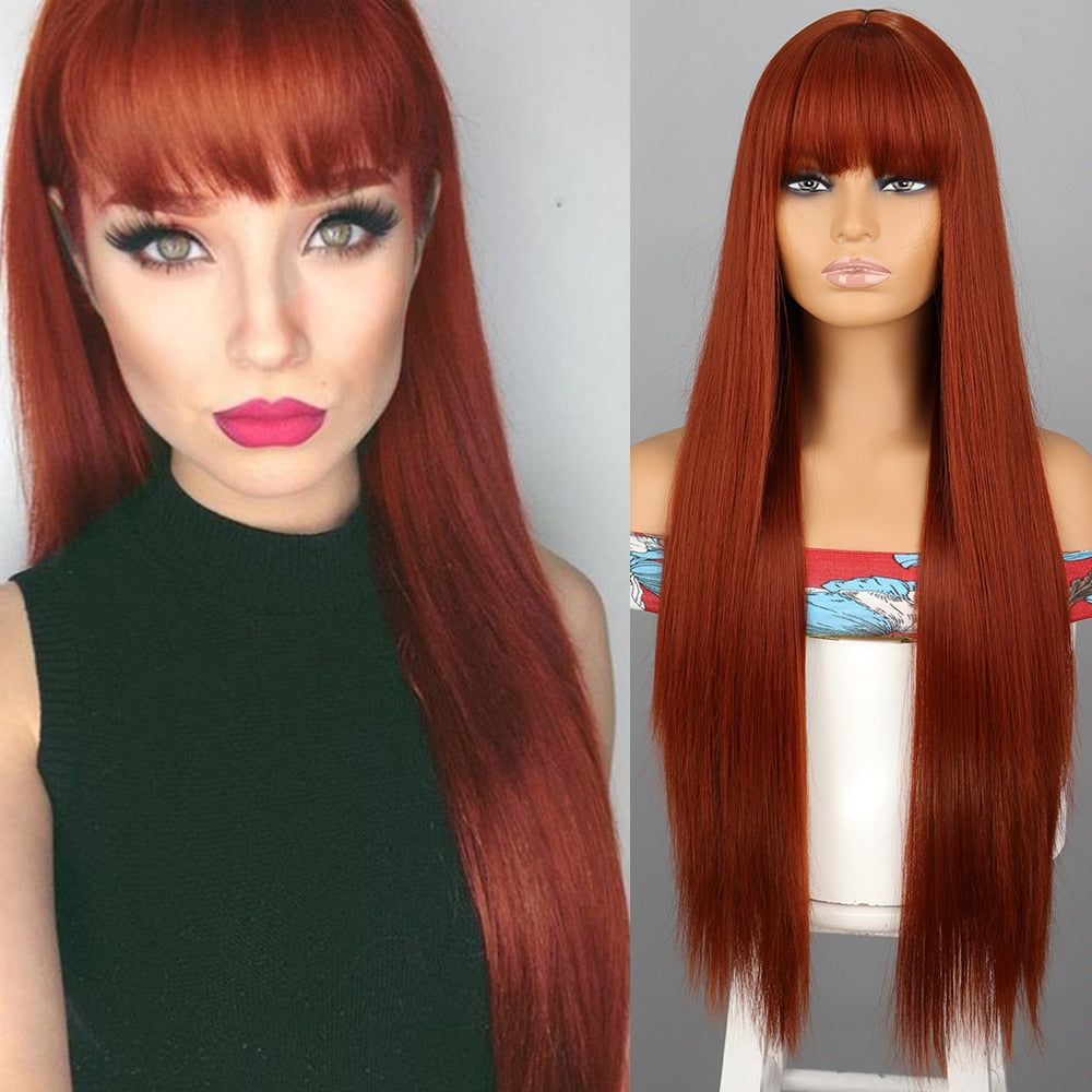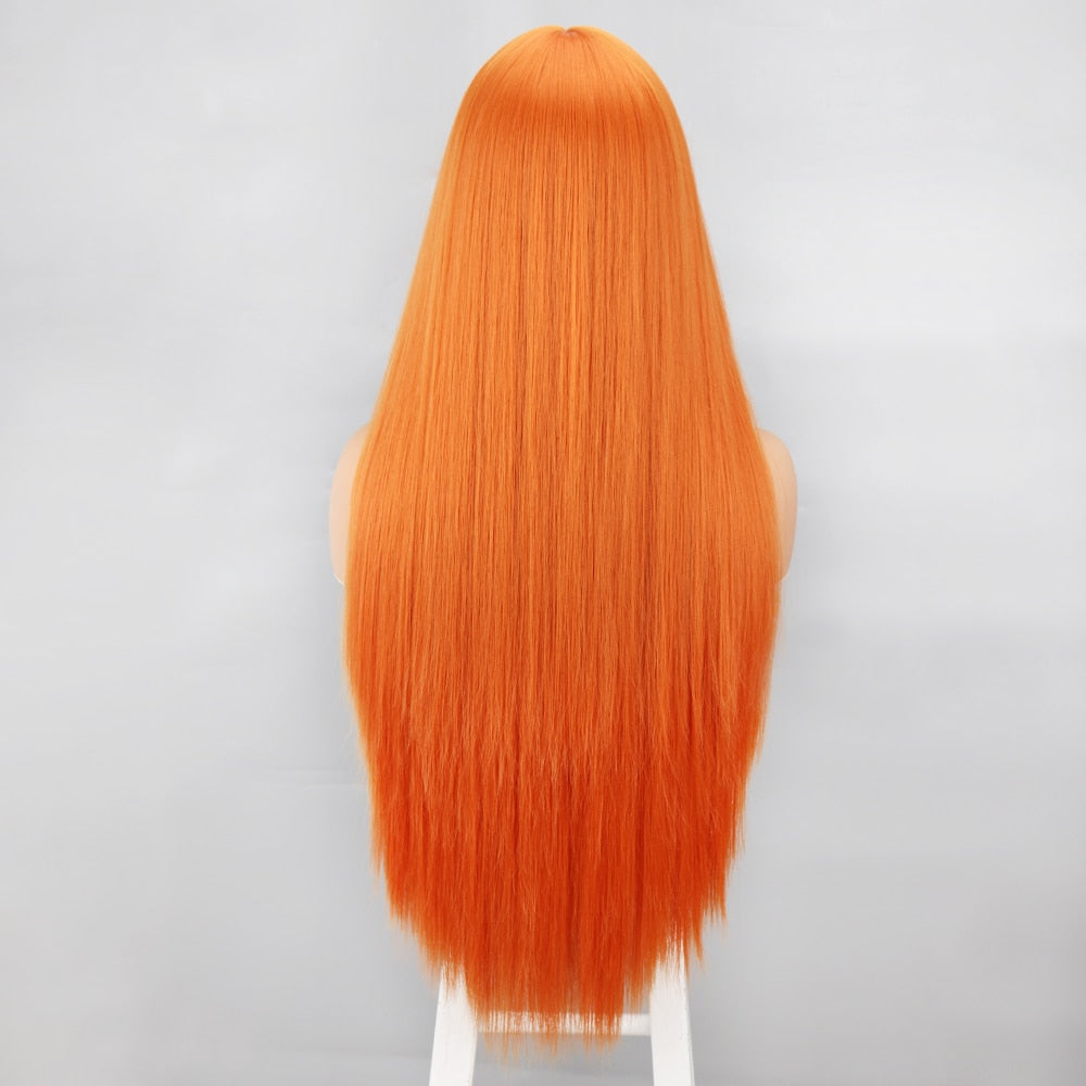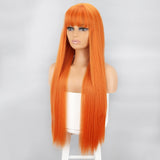 Yeknu Orange Synthetic Wigs Long Straight Wigs With Bangs For Women Pink Red Cosplay Party Daily Use Natural Hair