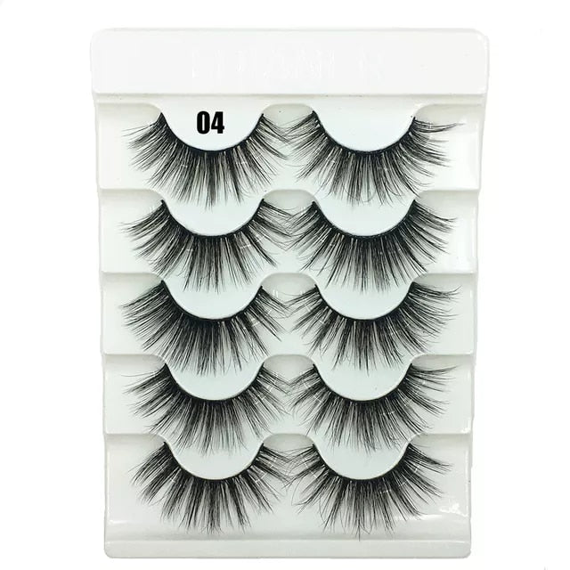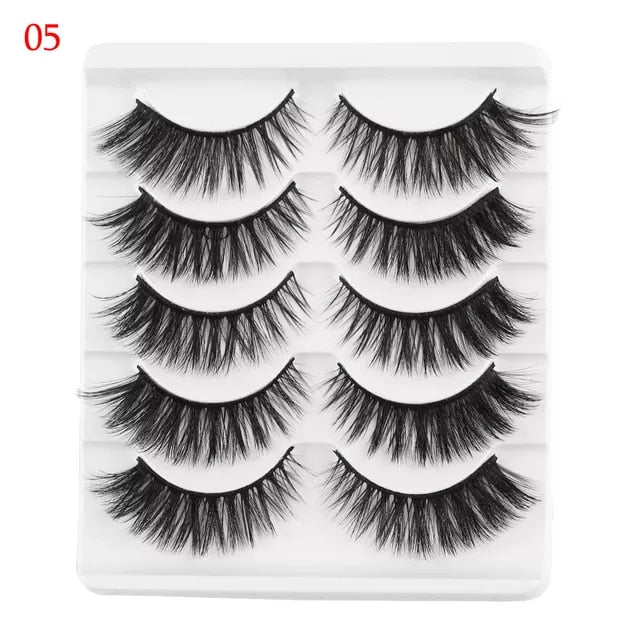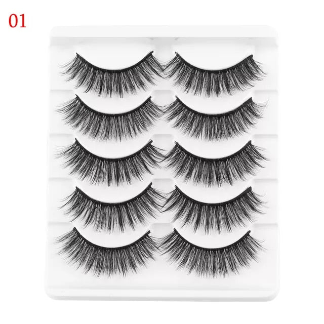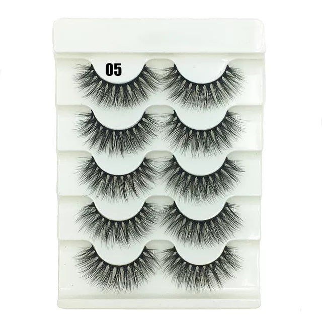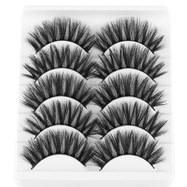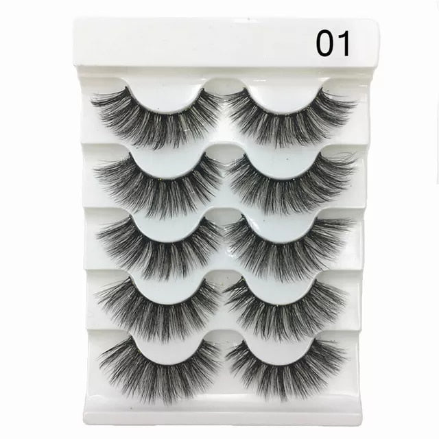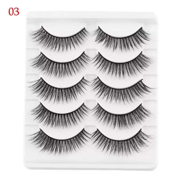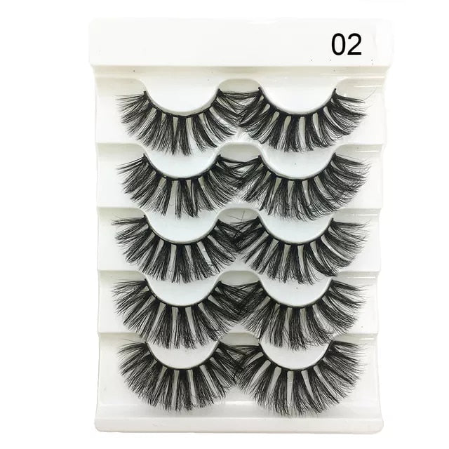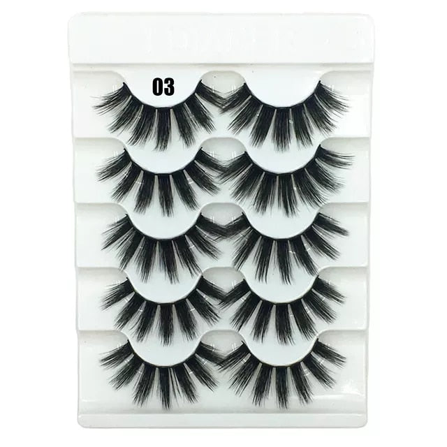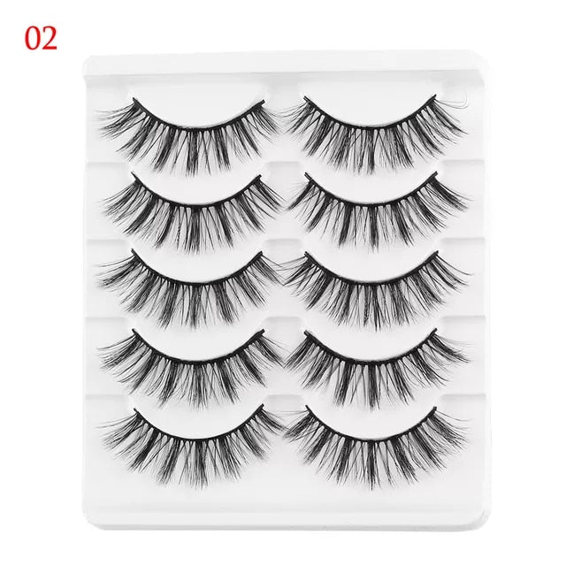 Yeknu - Pairs 3D Faux Mink Hair False Eyelashes Wispies Fluffies Drama Eyelashes Natural Long Soft Handmade Cruelty-free Black Lashes