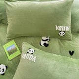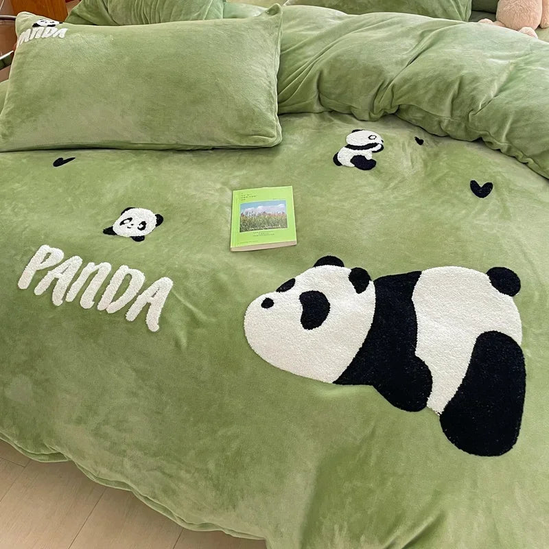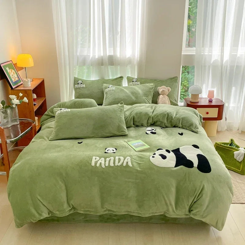 Yeknu Panda Cloud Velvet Bedding Set Double Queen King Size Bed Linens Warm Winter Blanket Cover Sheet Pillowcase