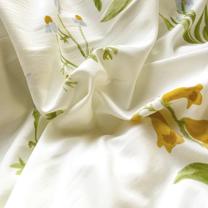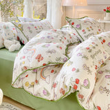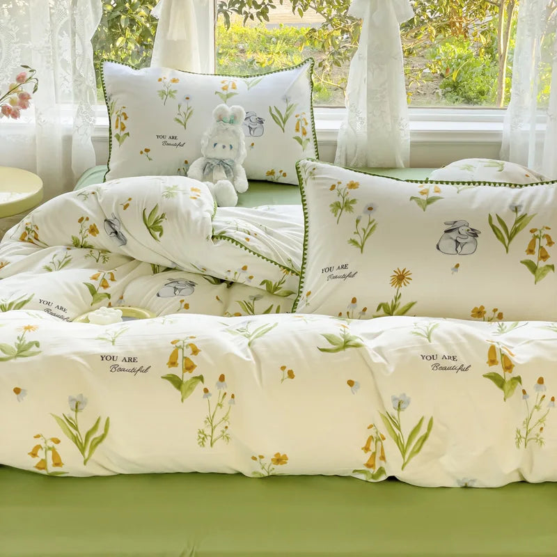 Yeknu Pastoral Girls Flower Bedding Sets, Washed Cotton Bed Linens, Soft Quilt Cover Sheet Set, Simple Bedspread, Home Textiles