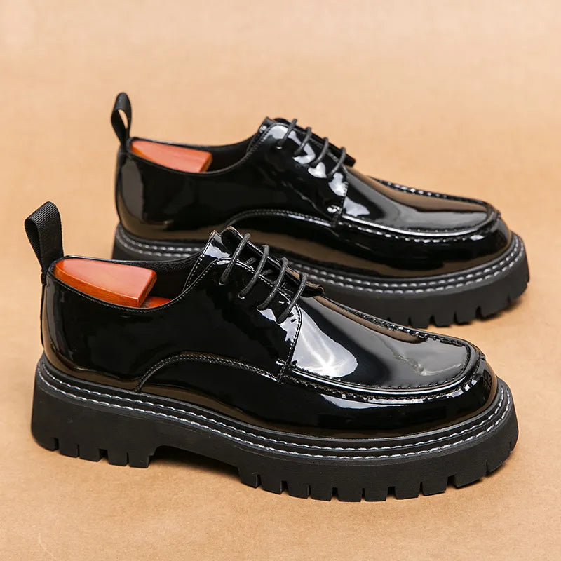 Yeknu Platform Shoes Oxford Shoes Man Thick-soled Wedding Shoes Formal Business Shoes Patent Leather Lace-up Heightening Casual Shoes