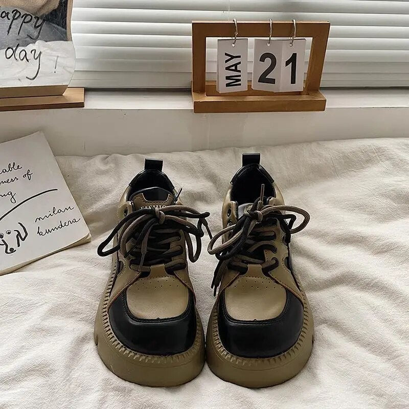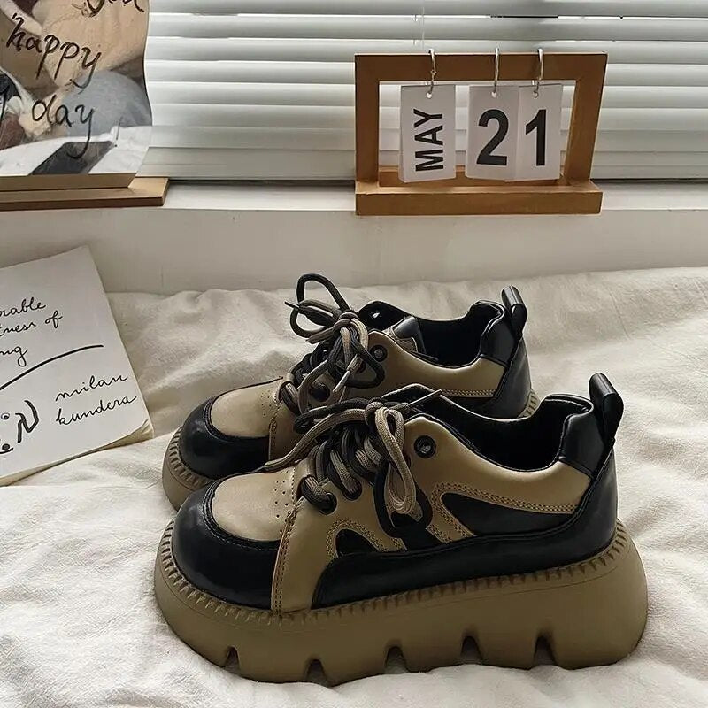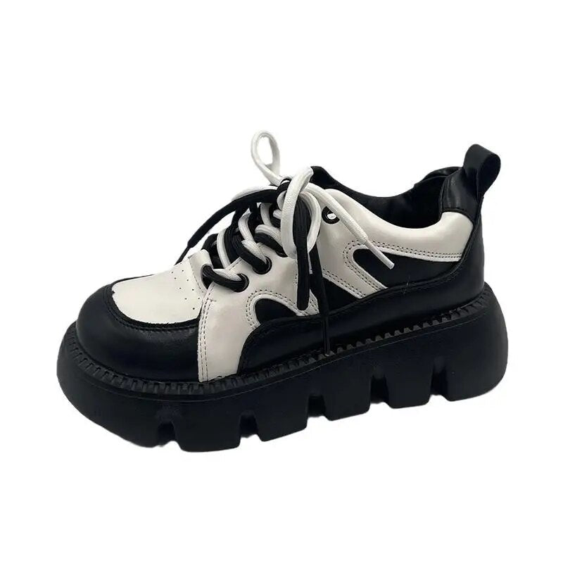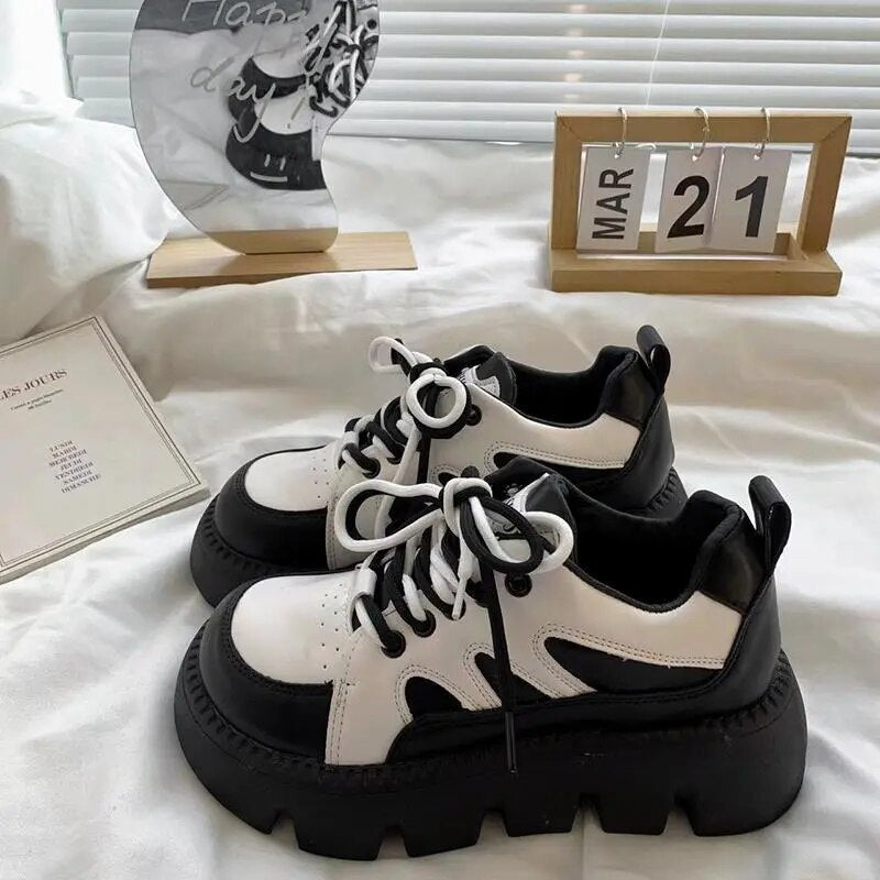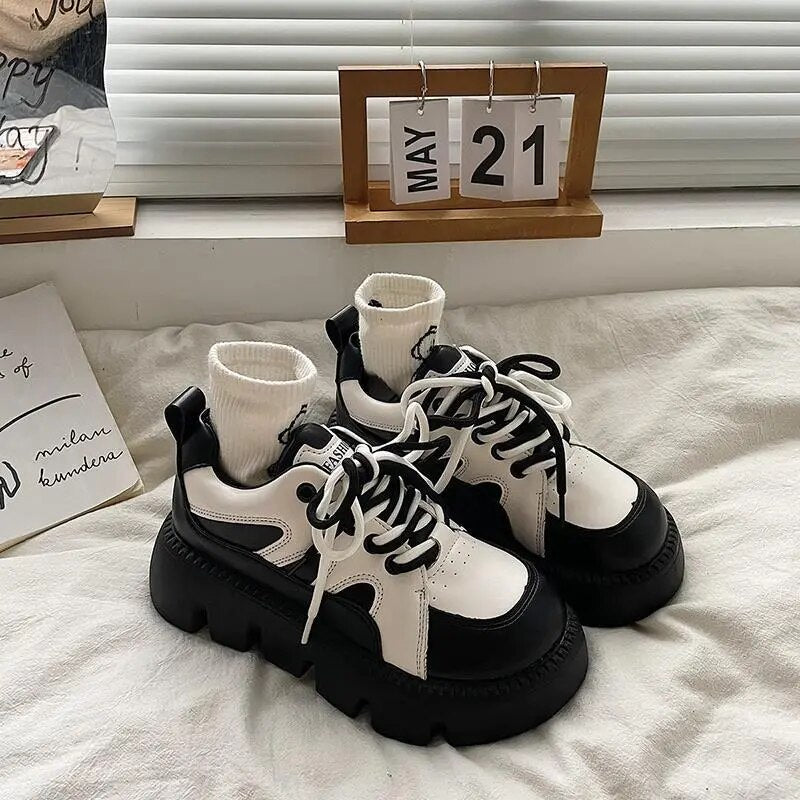 Yeknu - Platform Sneakers Women Cacual Shoes Spring Autumn Student Shoes Black White Female Shoes Trendy Dad Shoes Designer Shoes