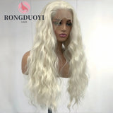 Yeknu Platinum Blonde Long Curly Synthetic Lace Front Wig Natural Wavy Deep Wave White Blond Colored Hair 13X4 Frontal Wigs for Women