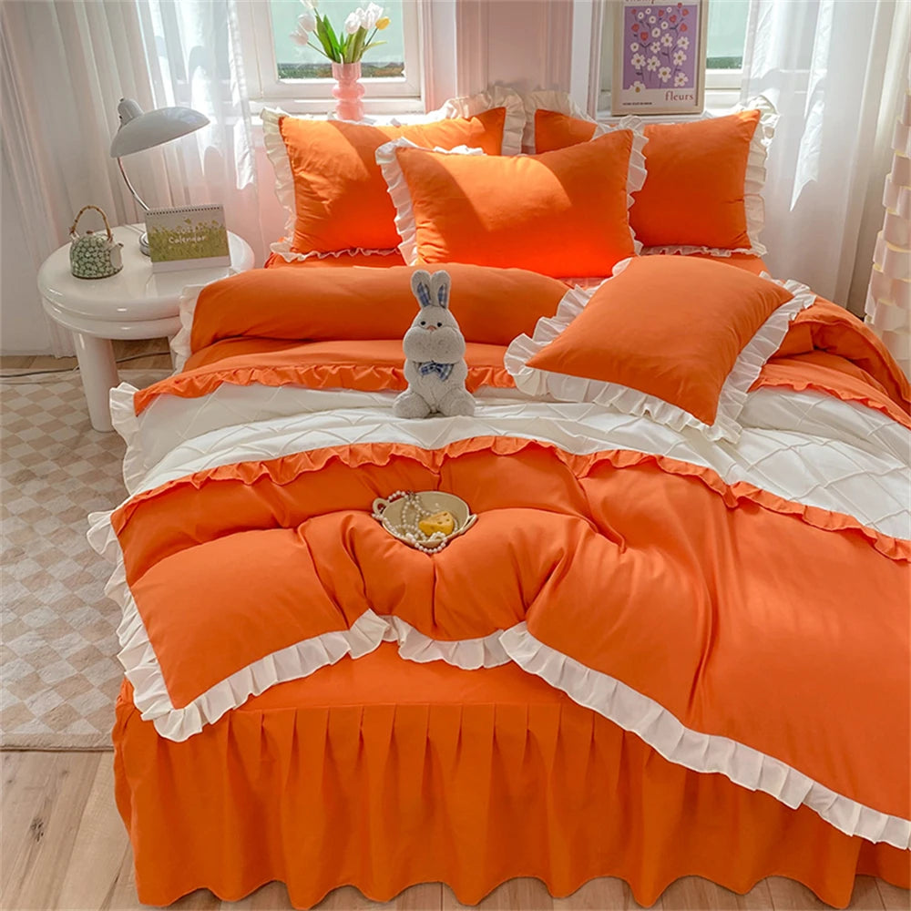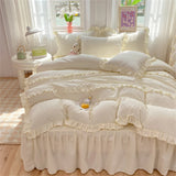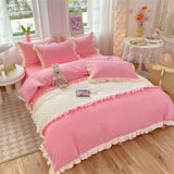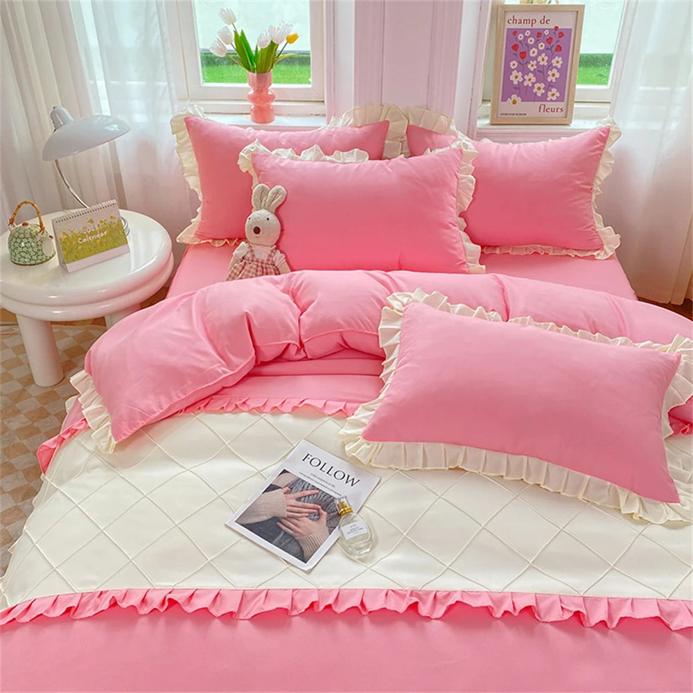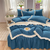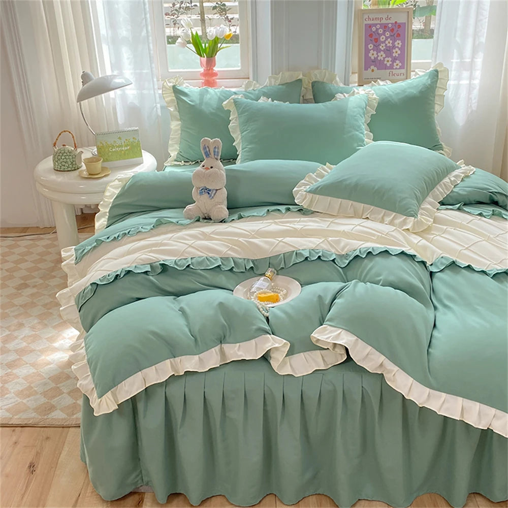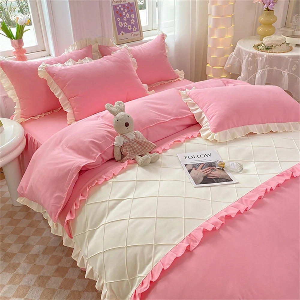 Yeknu Princess Style Bedding Set Ruffle Duvet Cover Lace Korean Four Piece Set Quilt Cover Pillowcase Girl Bedroom Decor Home Textiles