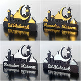Yeknu Ramadan Kareem Table Ornament Wooden Acrylic Eid Mubarak Moon Star Castle DIY Tabletop Decoration Islamic Party Home Decor