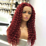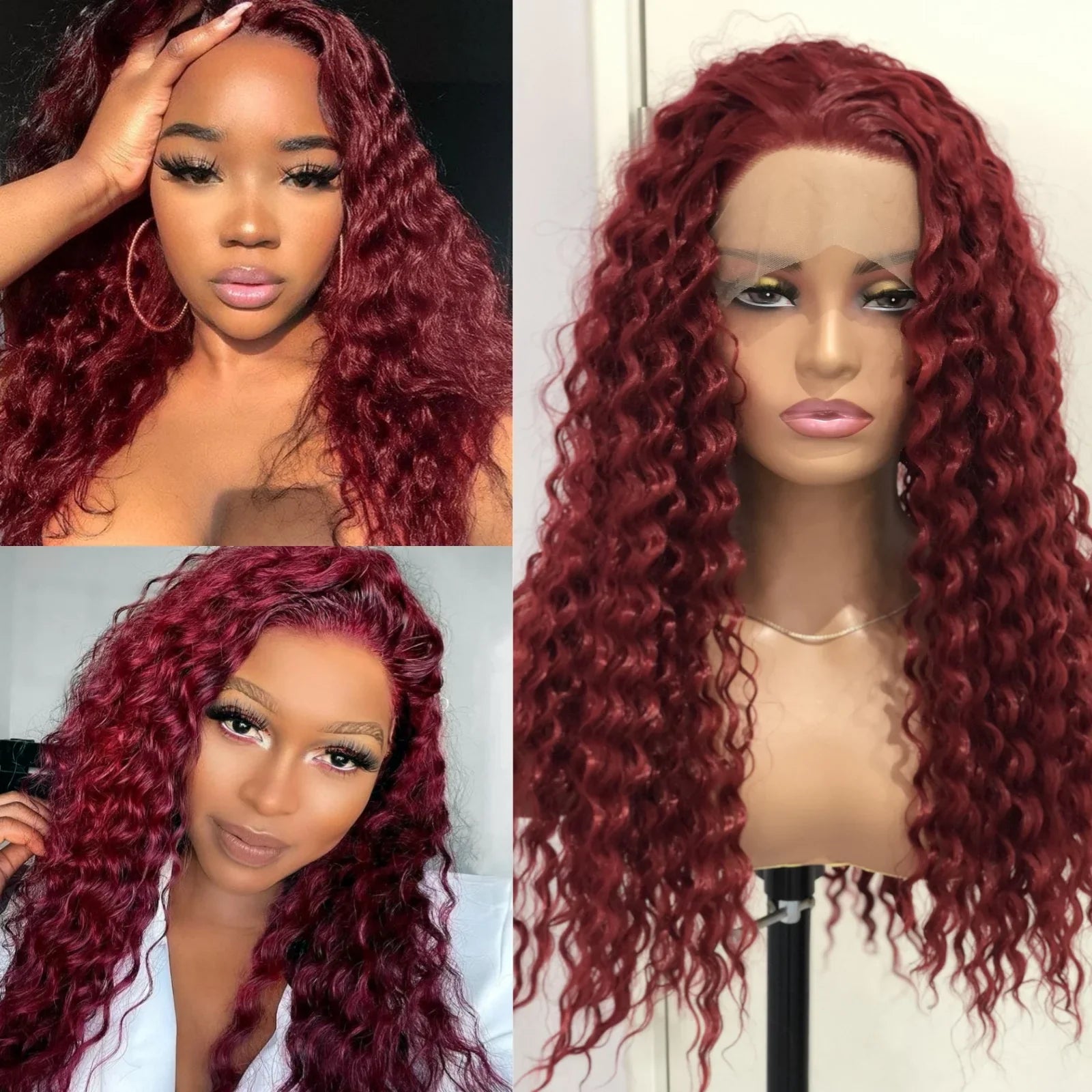 Yeknu Red Wig Deep Curly Synthetic Lace Front Wig Glueless Afro Kinky Curly Burgundy Colored Hair Lace Frontal Wigs for Women Party