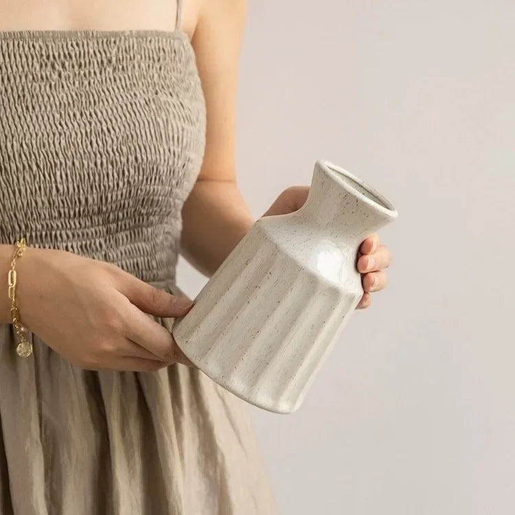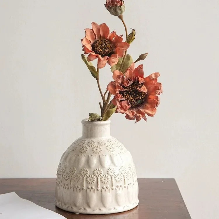 Yeknu Relief Ceramic Vase European Retro Vase Living Room Desktop Decoration Ornaments Flower Vase Dried Flower Arrangement Container