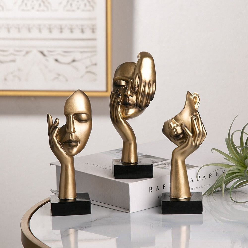 Yeknu Resin Abstract Statue Desktop Ornaments Sculpture Figurines Face Character Nordic Light Luxury Art Crafts Office Home Decor