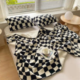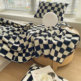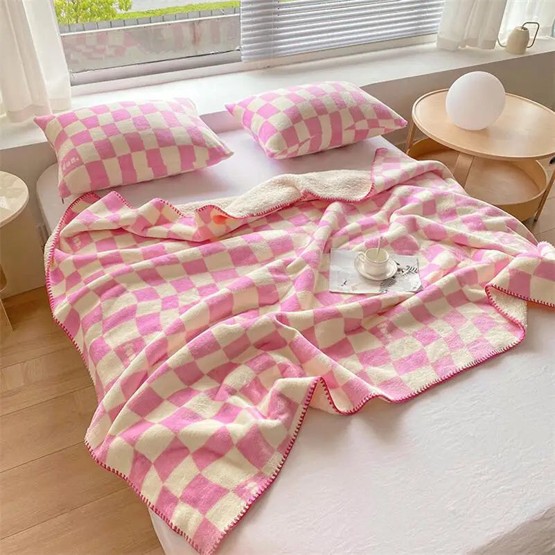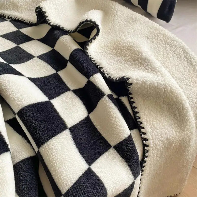 Yeknu Retro Checkerboard Plaid Throw Blankets Double Layer Soft Plush Warm Shawl Sofa Cover Fuzzy Blanket Fluffy Bedspread