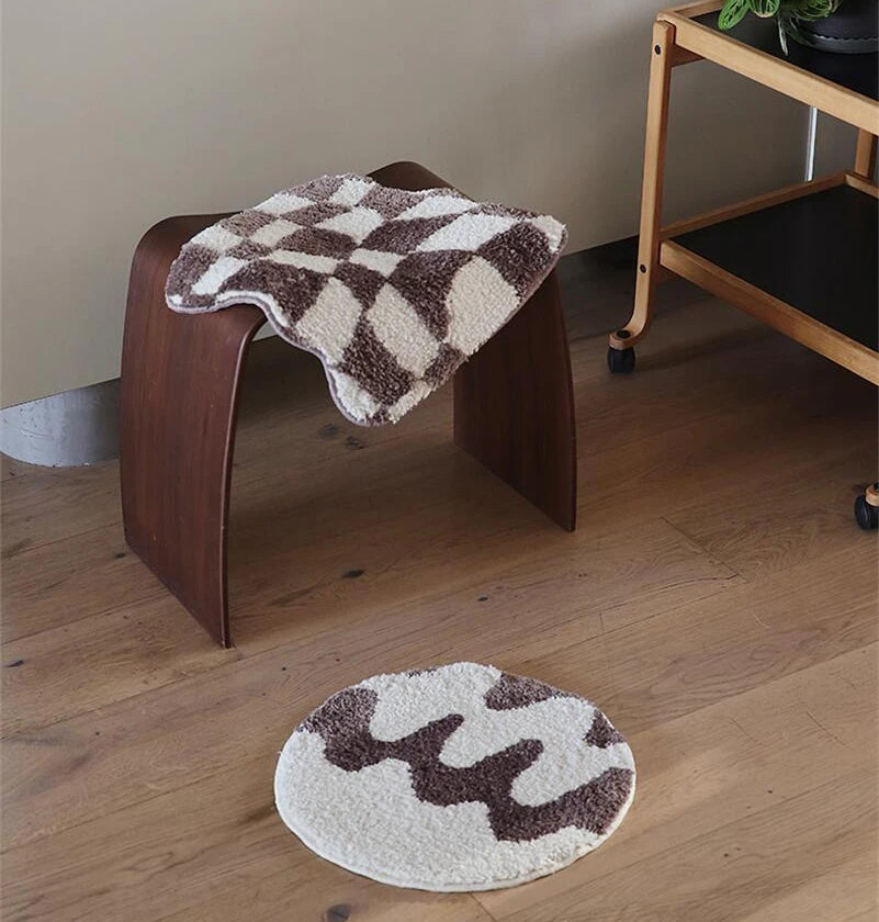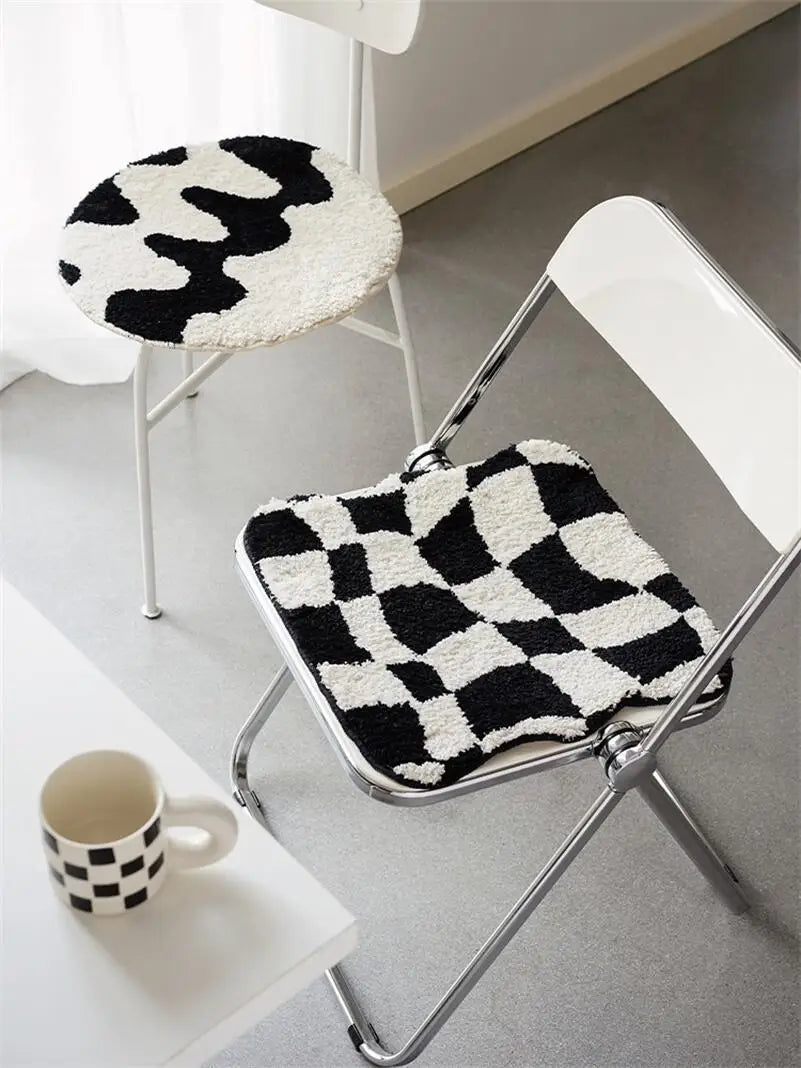 Yeknu Retro Geometry Tufted Seat Cushion Soft Loop Fleece Breathable Round Square Chair Mat Cushion Office Sedentary Anti-slip Mats