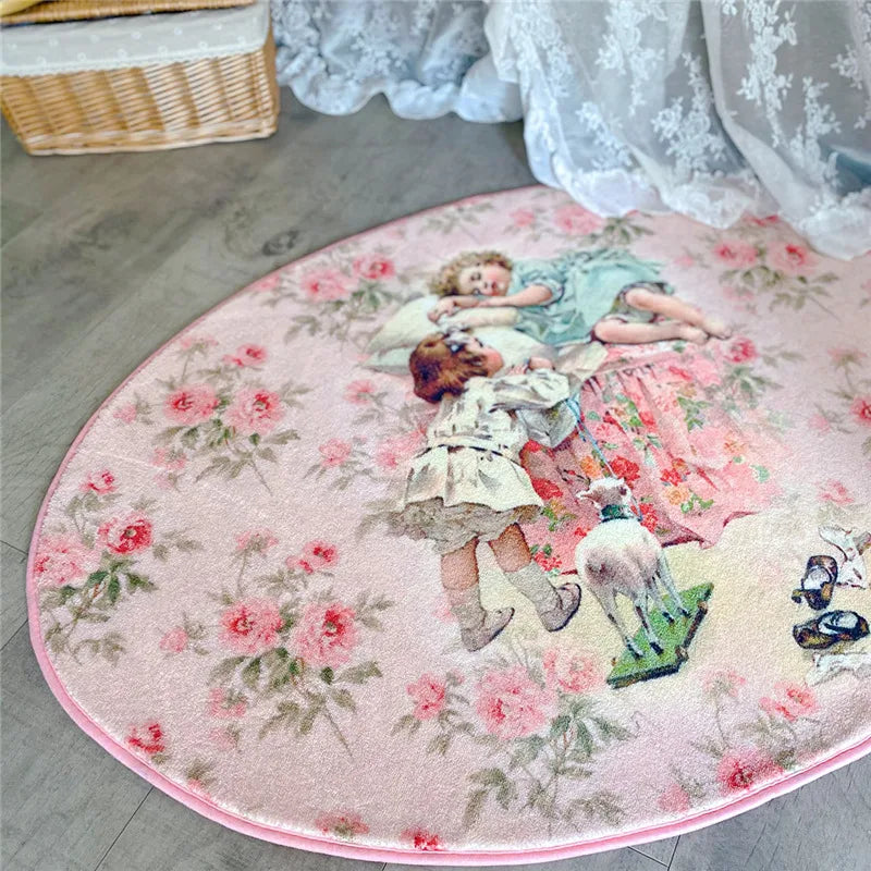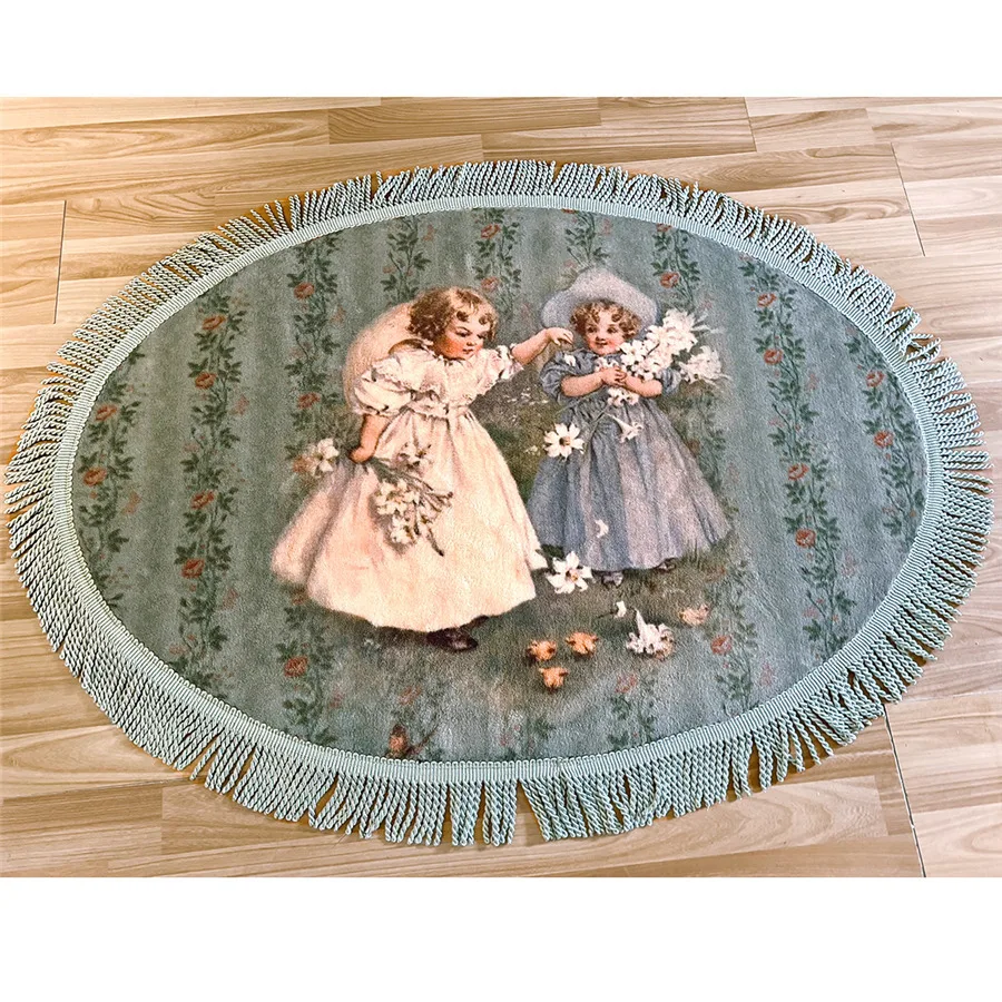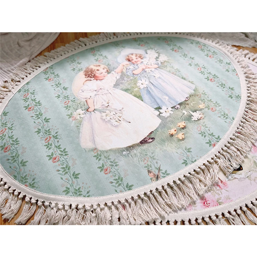 Retro Plush Carpet Girl Cute Non-Slip Soft Tassel Floor Mat Home Decor Livingroom Rugs Pastoral Comfor Bedroom Bedside Carpet