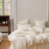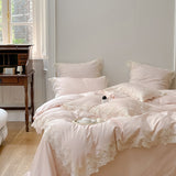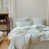 Yeknu - Romantic French Wedding Chic Flowers Lace Edge Woman Bedding Set 1000TC Egyptian Cotton Girl Duvet Cover Bed Sheet Pillowcases