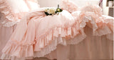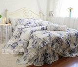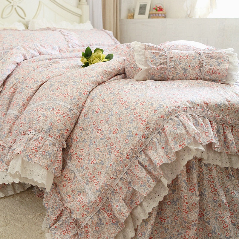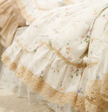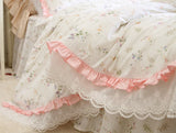 Yeknu Romantic Ruffle luxury duvet cover rose print bedding king duvet cover lace bed set princess cotton quilt cover duvet set queen