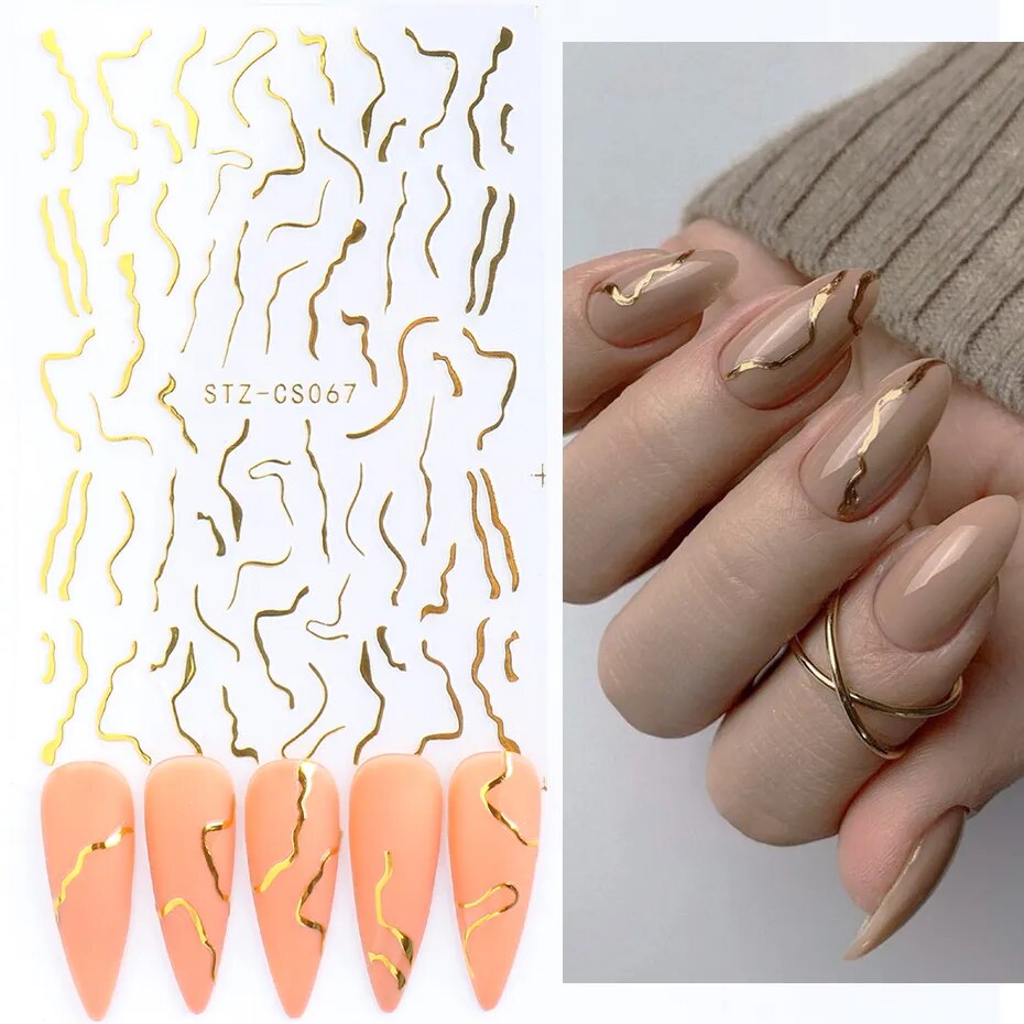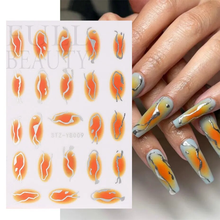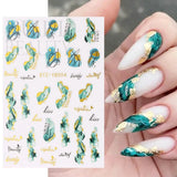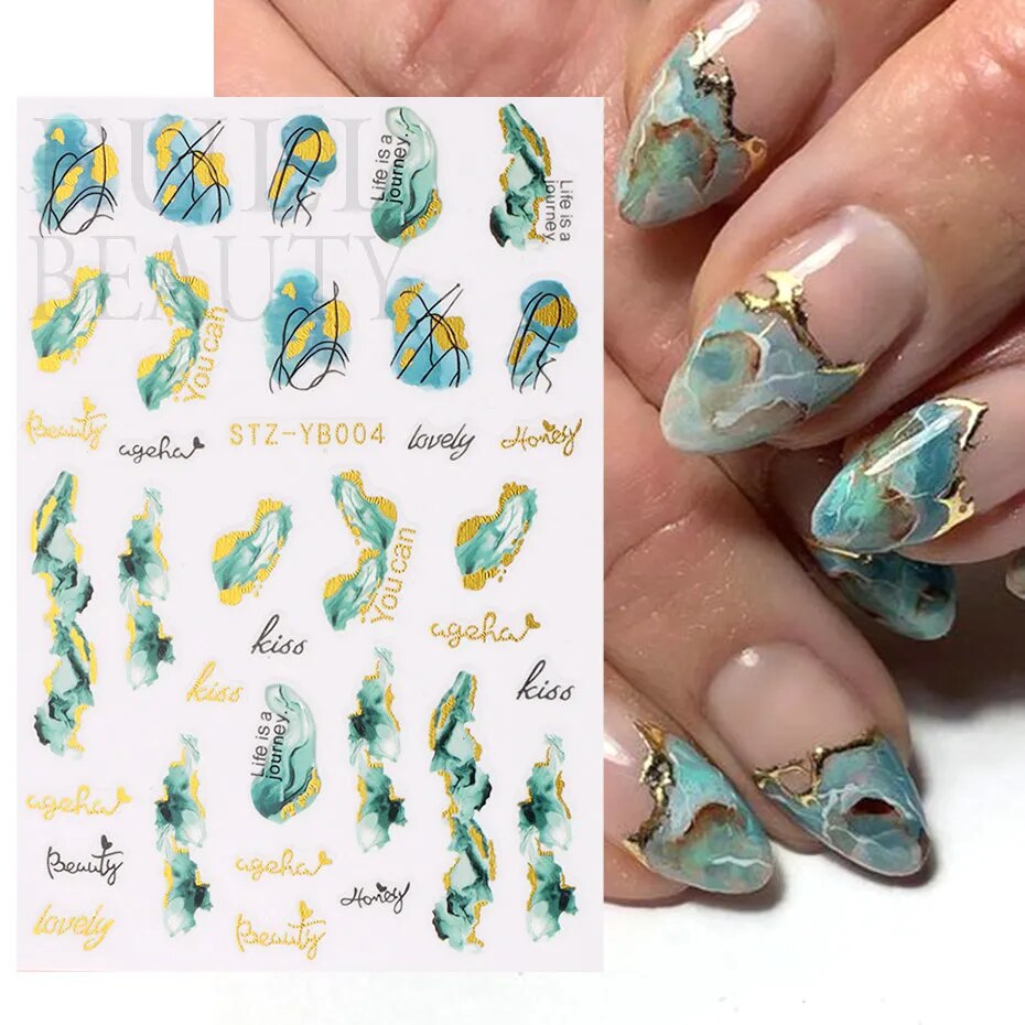 1pcs Royalblue Blooming Smoke Stickers on Nails Marble Design Coloring Bloom Manicure Decals Golden Wave Drawing Nail Slider