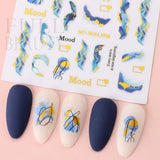Yeknu - Royalblue Blooming Smoke Nails Stickers Marble Design Coloring Bloom Manicure Decals Golden Wave Drawing Slider Foil Nail Art
